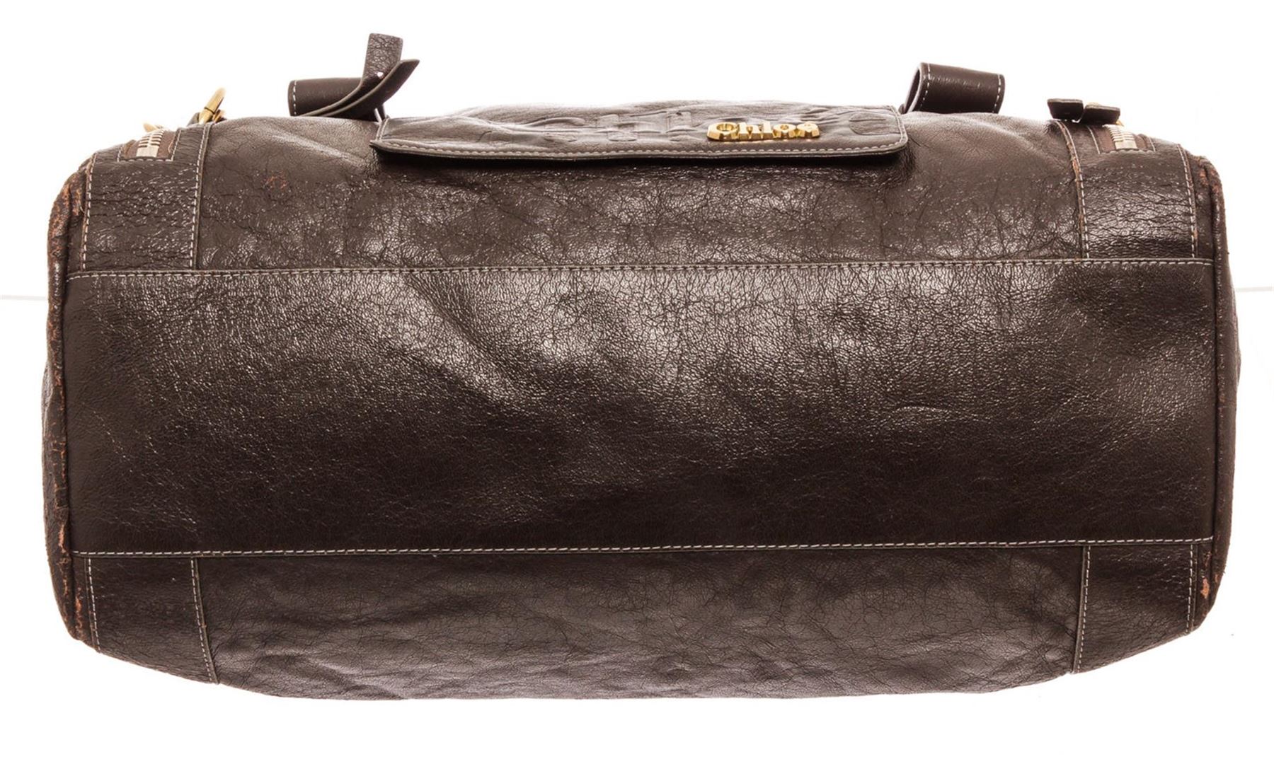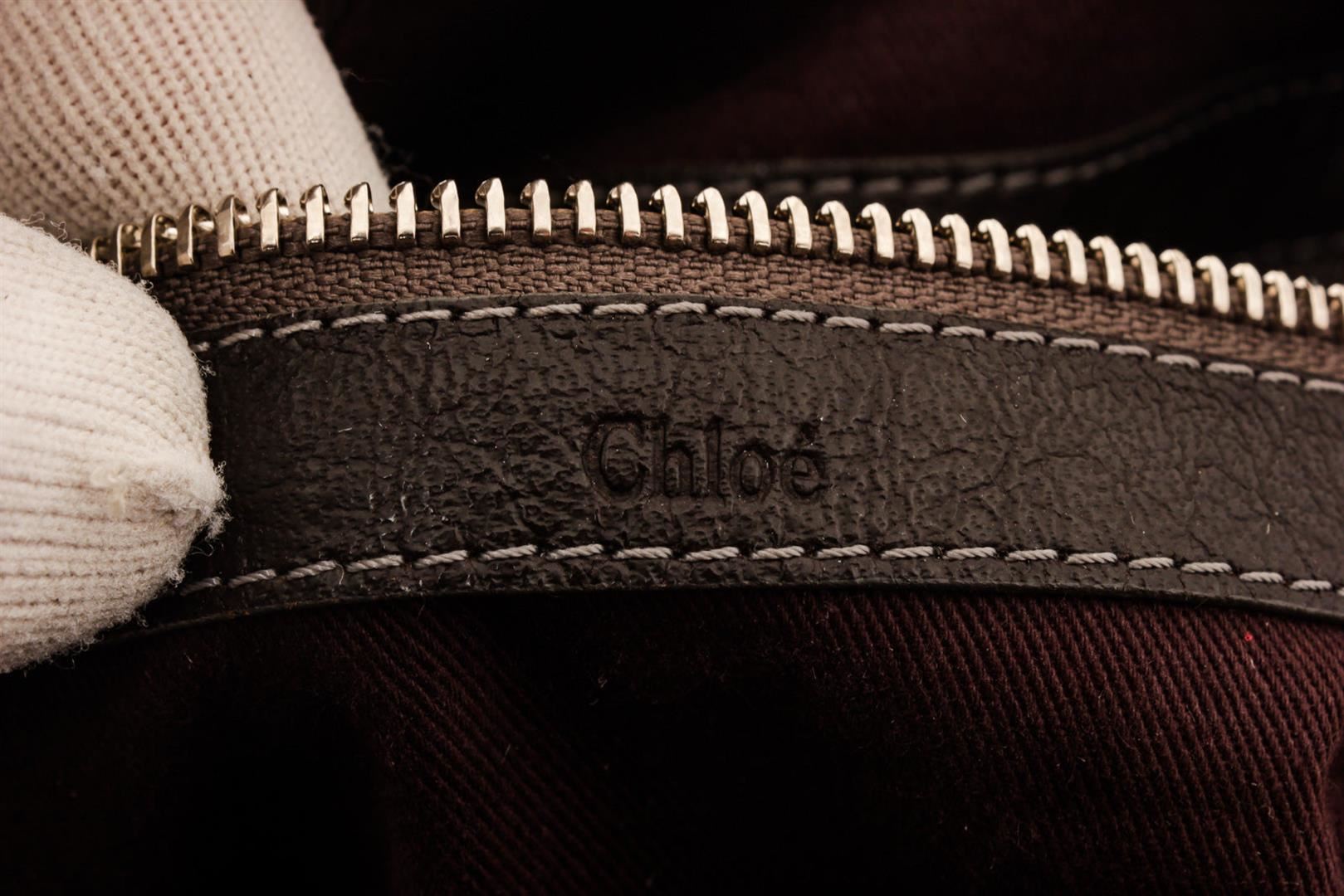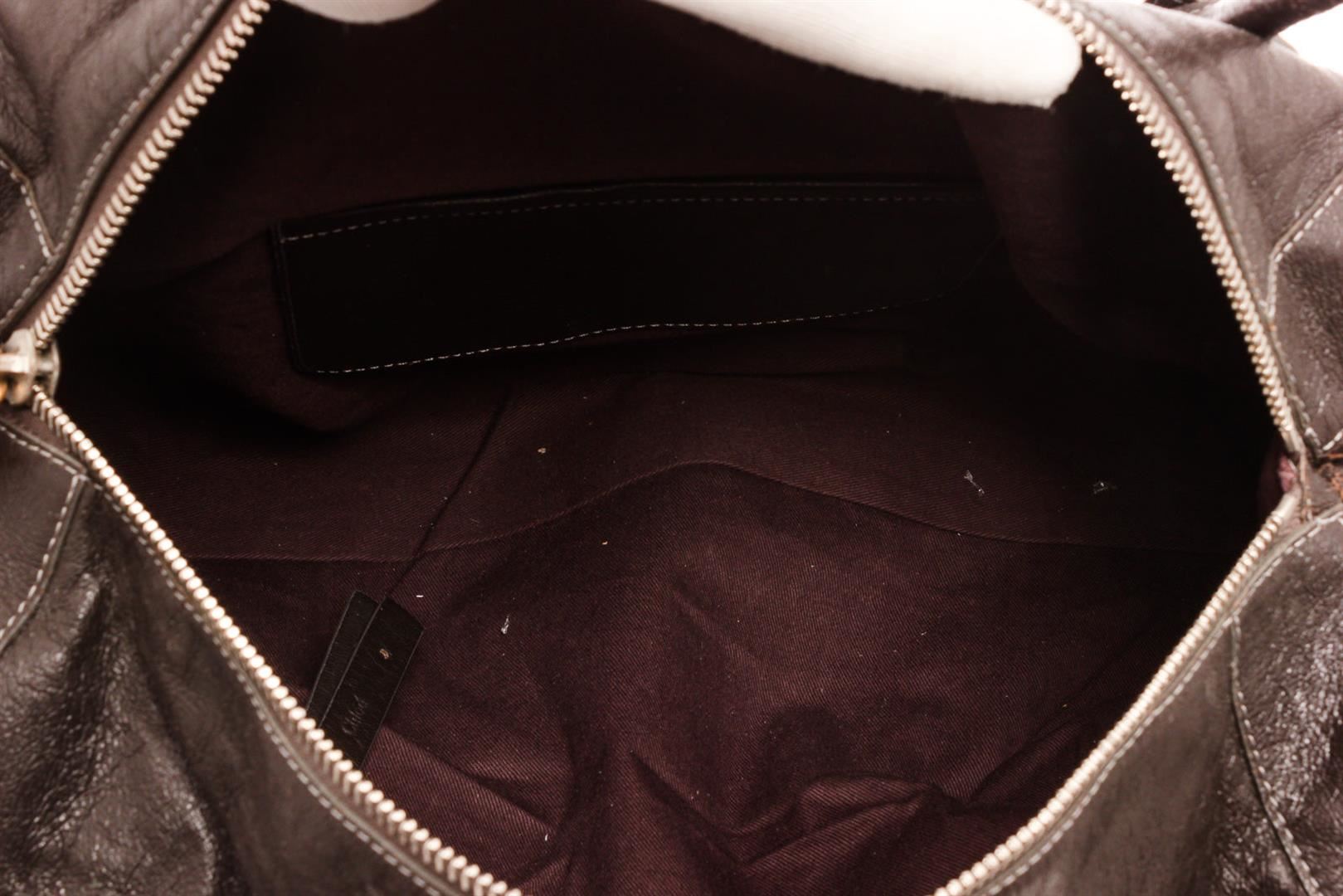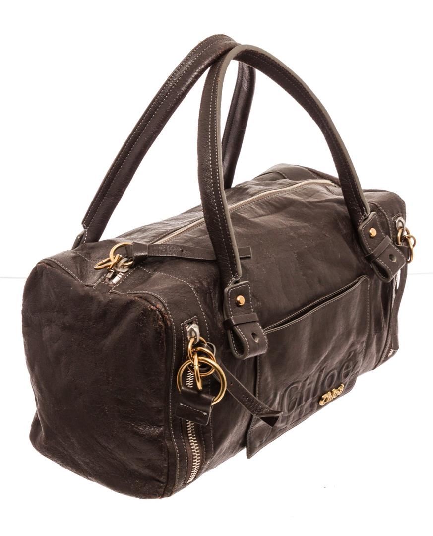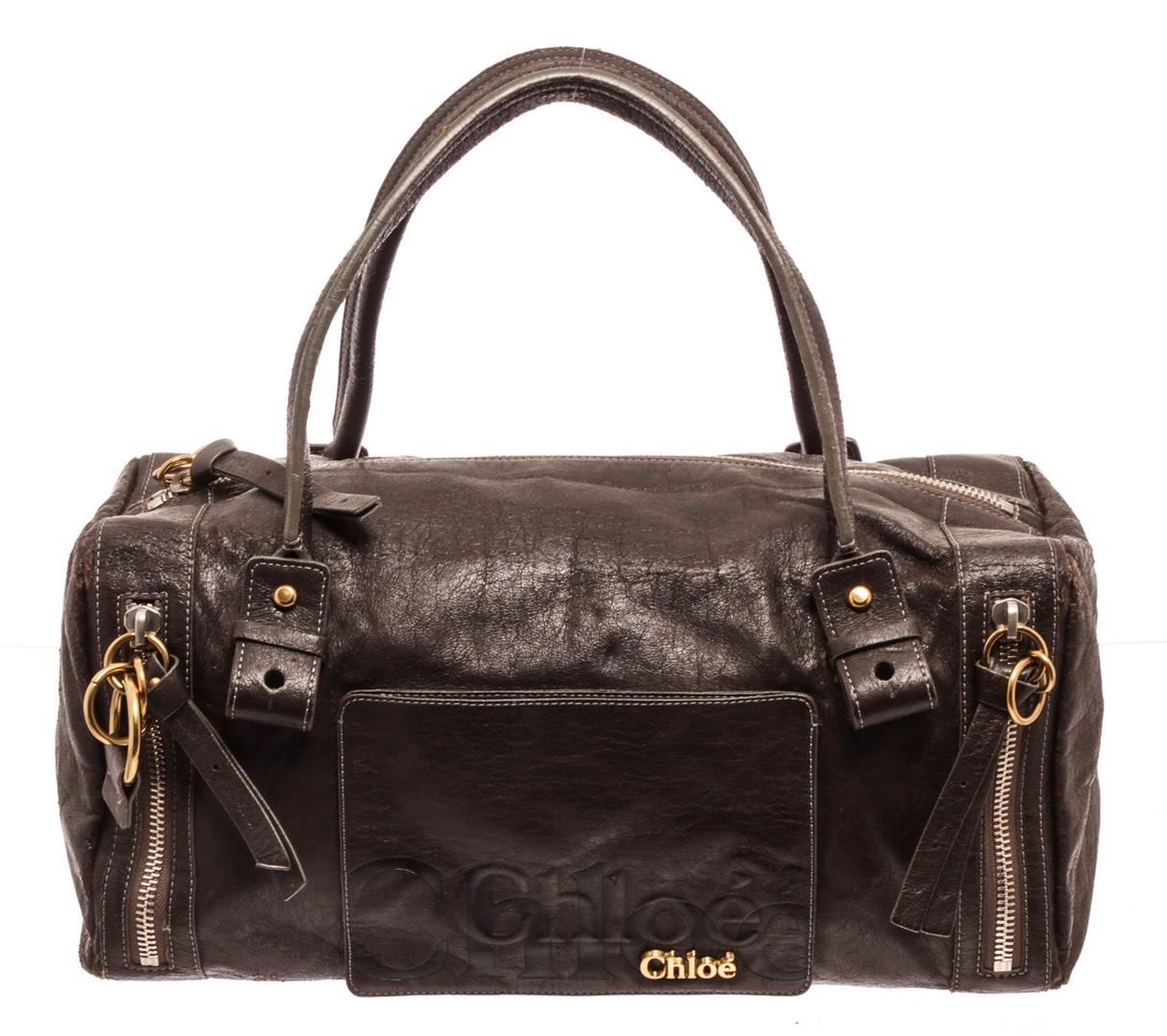 Chloe Brown Leather Eclipse Duffle Bag with gold-tone hardware, rolled handles single adjustable shoulder strap, canvas lining single interior pocket, zip closure.