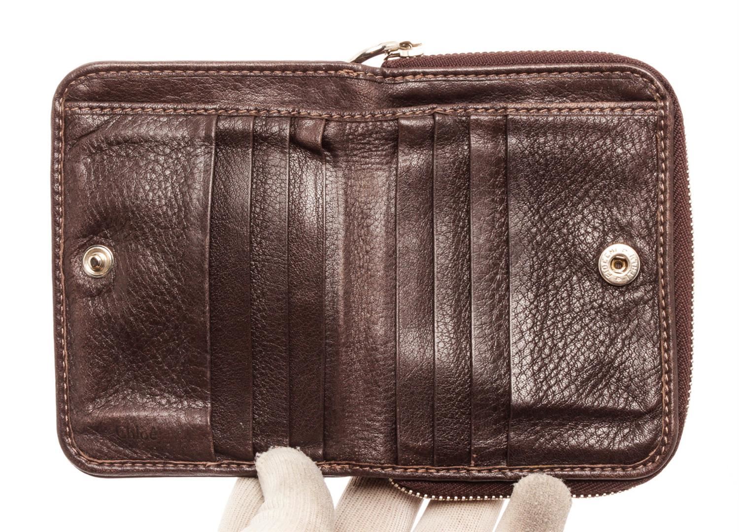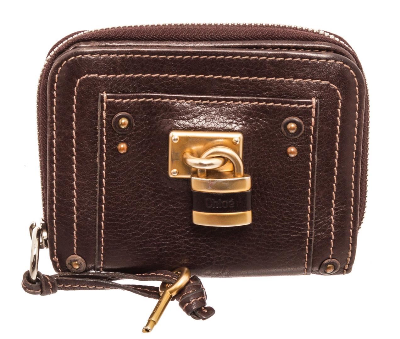 Chloe Brown Leather Paddington Wallet with gold-tone hardware, leather trim, interior compartments pocket and zip closures.