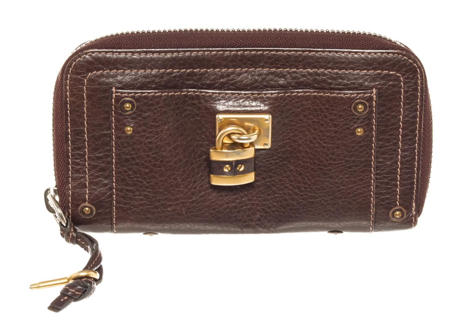 One Chloe Brown Leather Paddington Zippy Wallet. Item is sold AS-IS. All available information is listed in the description and shown in the photo. Chloe Brown Leather Paddington Zippy Wallet with gold and silver tone hardware, brown trim, brown fabric lining, and a zipper closure.