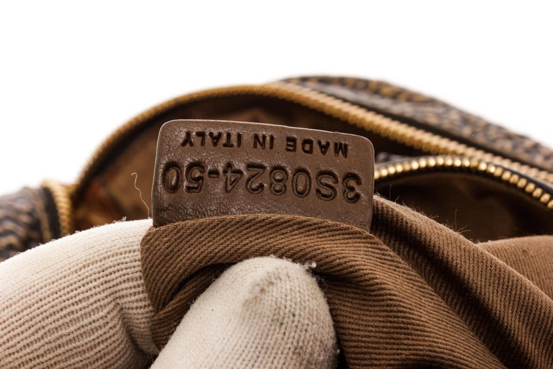 Chloe Brown Leather Two Way Shoulder Bag with gold-tone hardware, trim leather, dual top handle, shoulder strap and zipper closure.