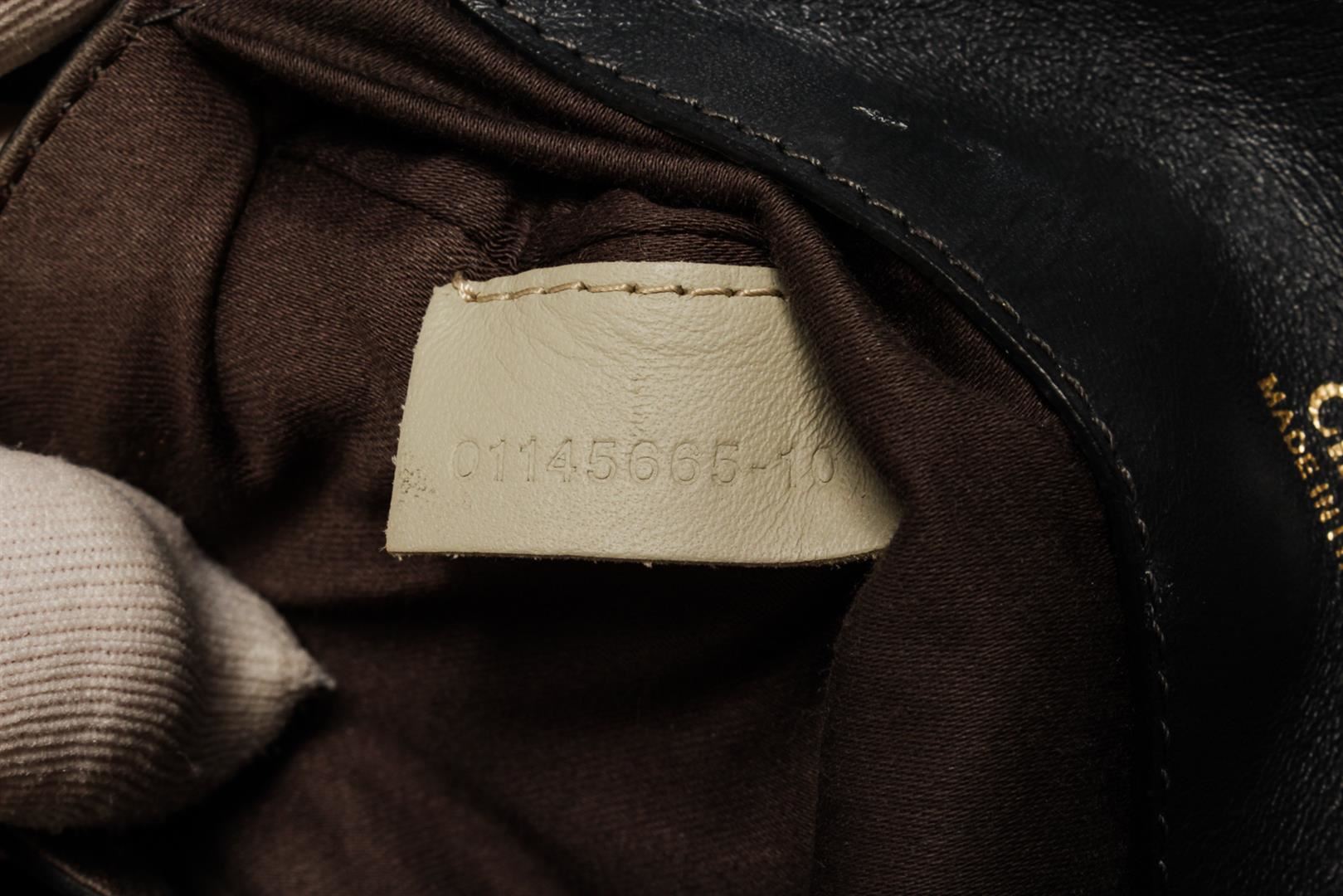 Baylee Medium Two-tone tote from Chloé is crafted from Calfskin leather in black and gray. The bag features an adjustable shoulder strap, two gold-tone zipper fastening along the top. The interior of the bag consist of brown canvas lining with slip pocket