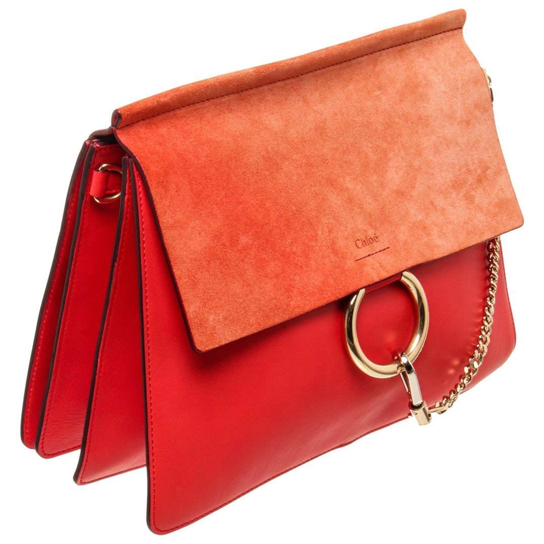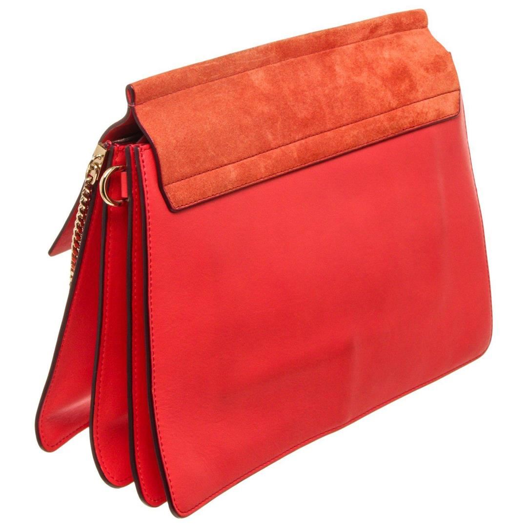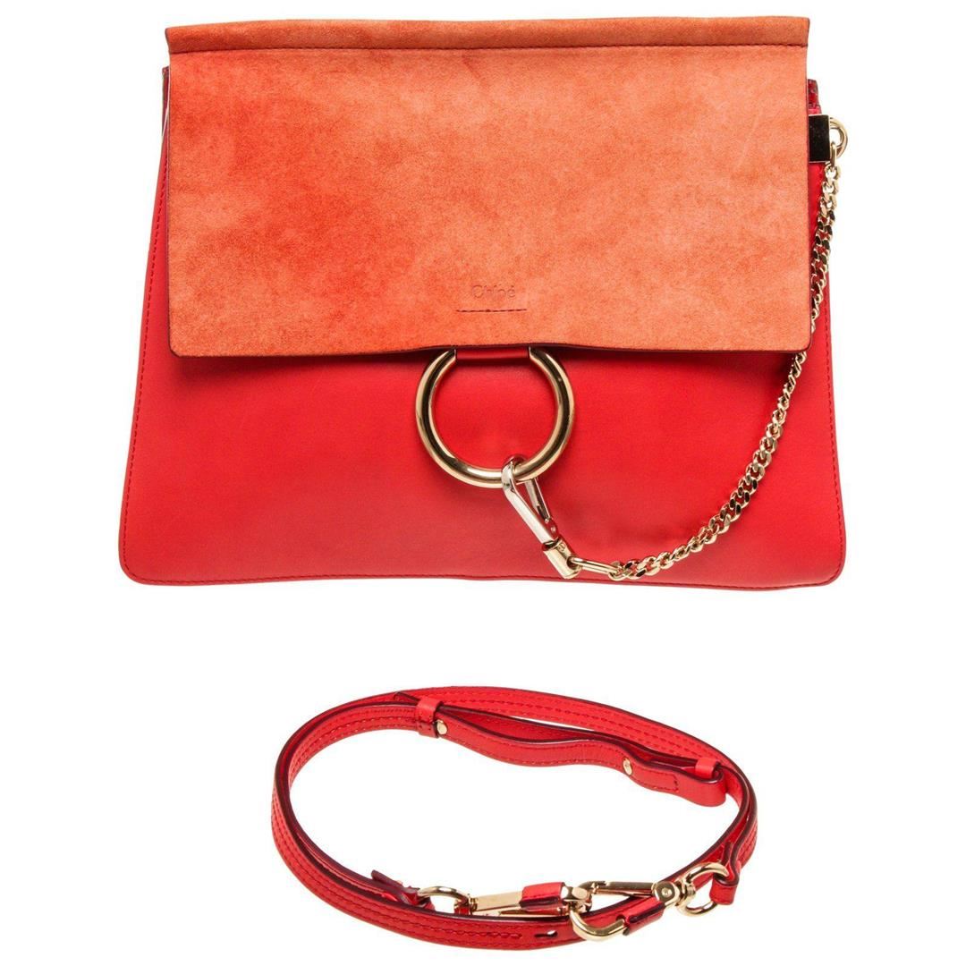 Chloe Orange Canvas Leather Faye Shoulder Bag with gold-tone hardware, suede trim, single adjustable shoulder strap, suede lining & four interior pockets, snap closure.