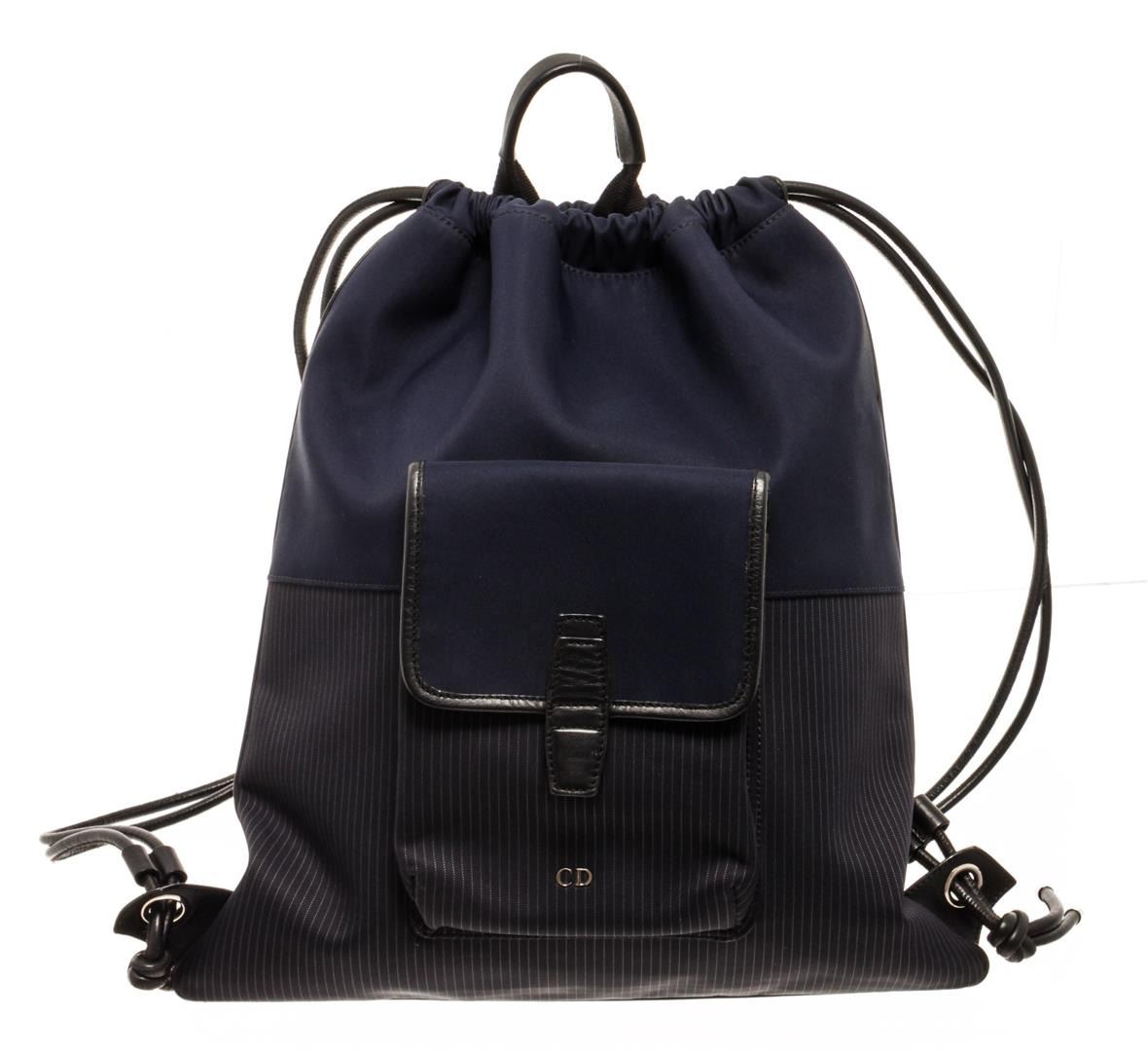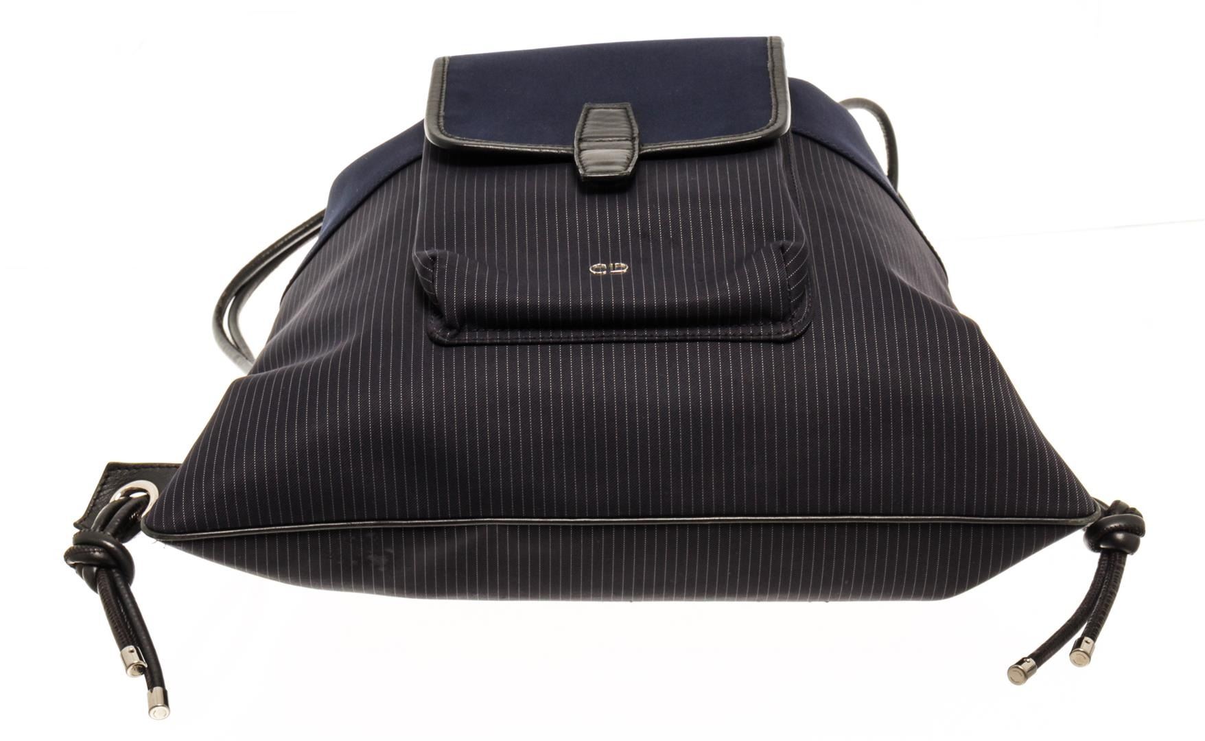 One Christain Dior Blue Fabric Backpack. Item is sold AS-IS. All available information is listed in the description and shown in the photo. christain blue fabric dior backpack with silver hardware.