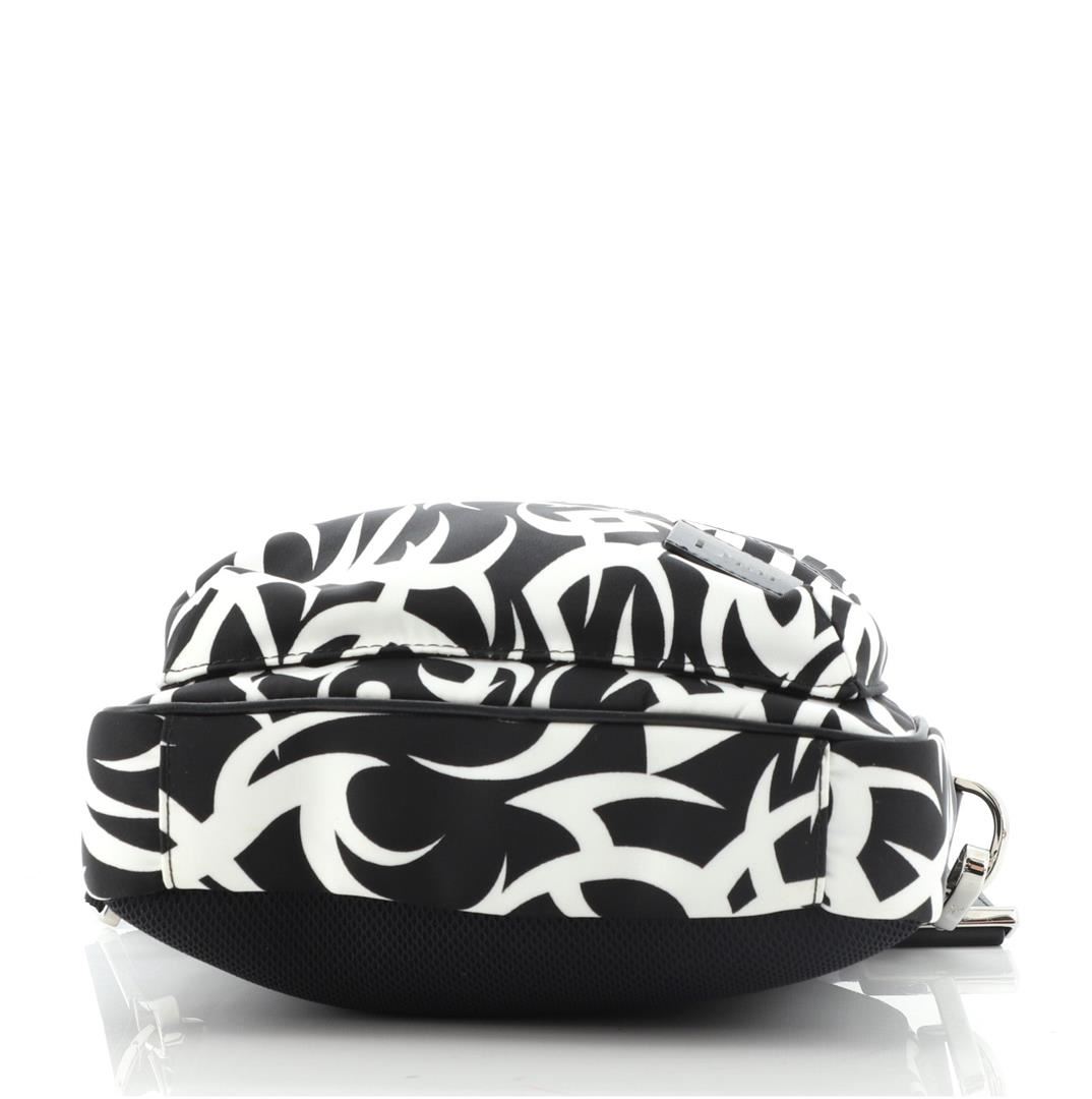 Christian Dior Black White Printed Nylon Mini Rider Shoulder Bag Condition Details: Minor discoloration and marks on exterior and in interior, glue stains on interior opening trim, scratches on hardware. MMeasurements: Height 9", Width 7.5", Dep