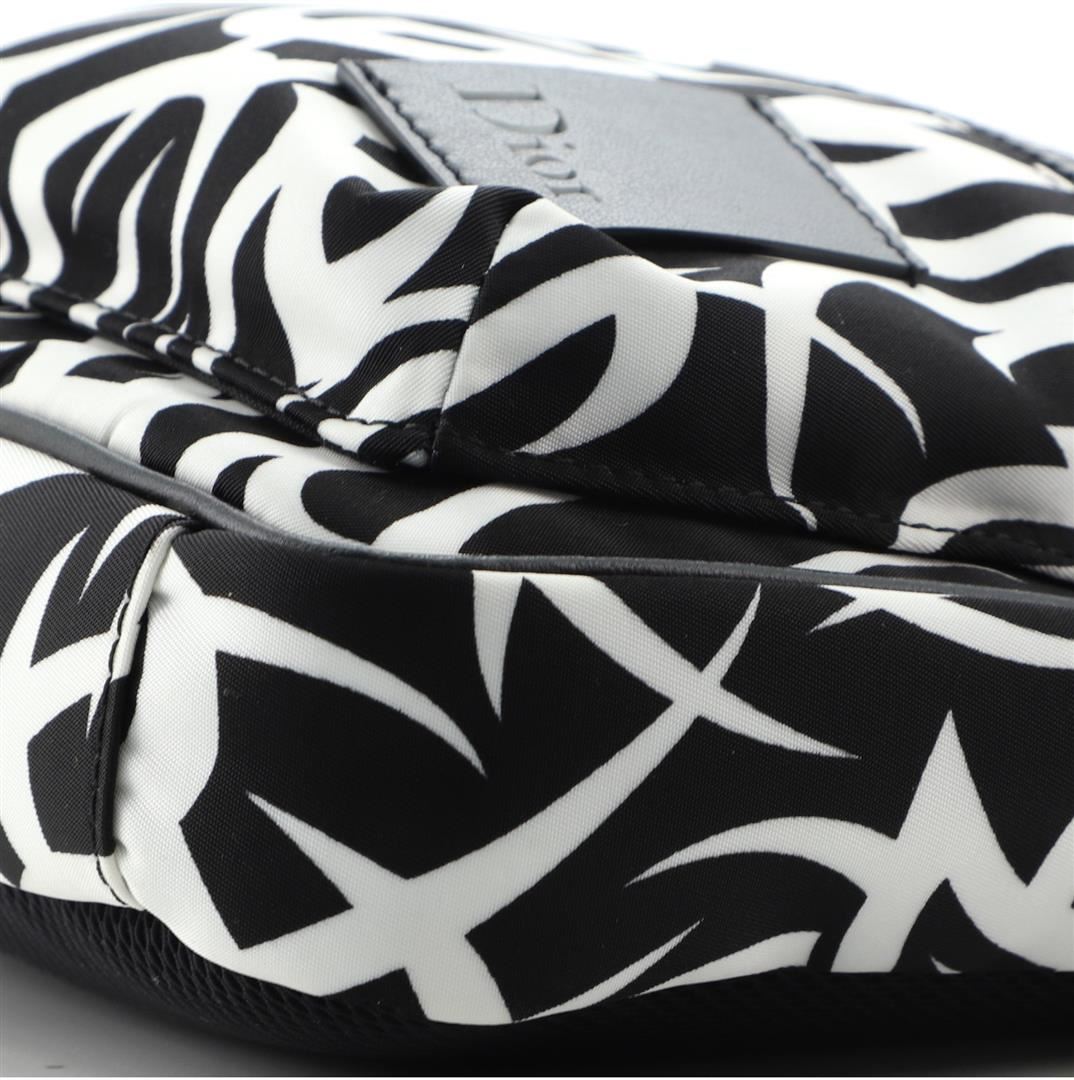 One Christian Dior Black White Printed Nylon Mini Rider Shoulder Bag. Item is sold AS-IS. All available information is listed in the description and shown in the photo. Christian Dior Black White Printed Nylon Mini Rider Shoulder Bag Condition Details: Minor discoloration and marks on exterior and in interior, glue stains on interior opening trim, scratches on hardware. Measurements: Height 9", Width 7.5", Depth 2", Strap Drop 12.5-24"