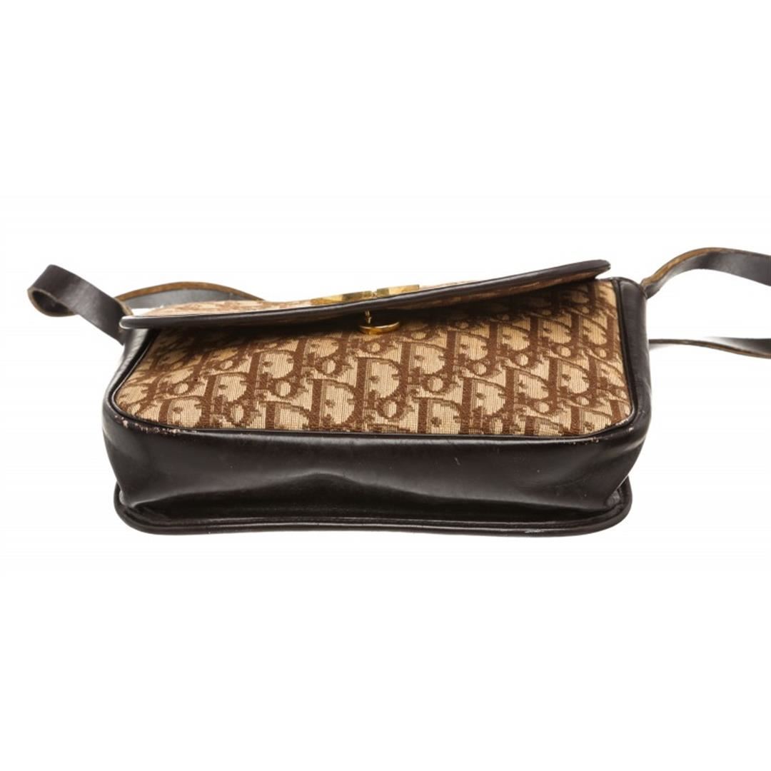 Overall flap snap closure. Interior is leather lined and contains one side zipper pocket. Exterior contains metal Christian Dior logo. Removable adjustable strap included. Item is pre-owned.