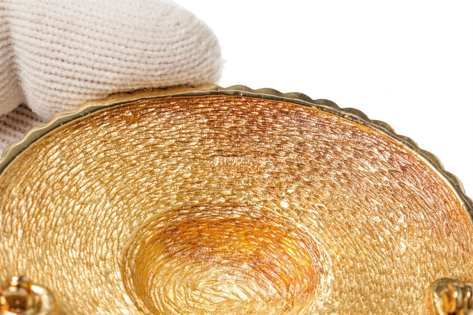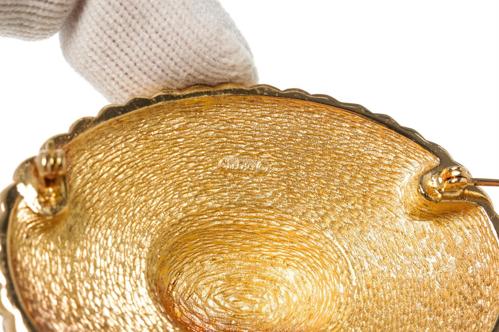 One Christian Dior Gold Chain Round Brooch. Item is sold AS-IS. All available information is listed in the description and shown in the photo. Gold Round Christian Dior brooch with chain pattern and gold-tone hardware.