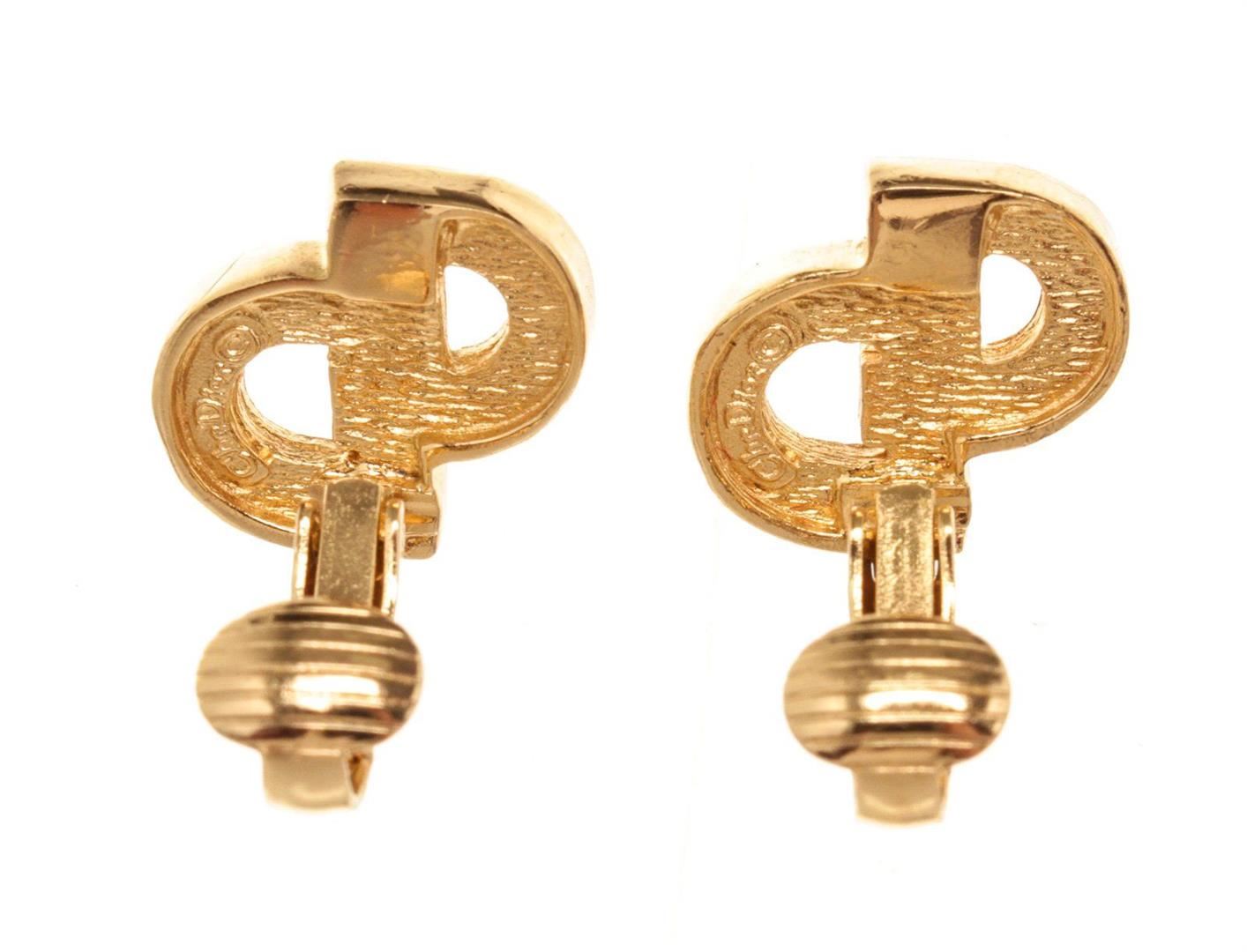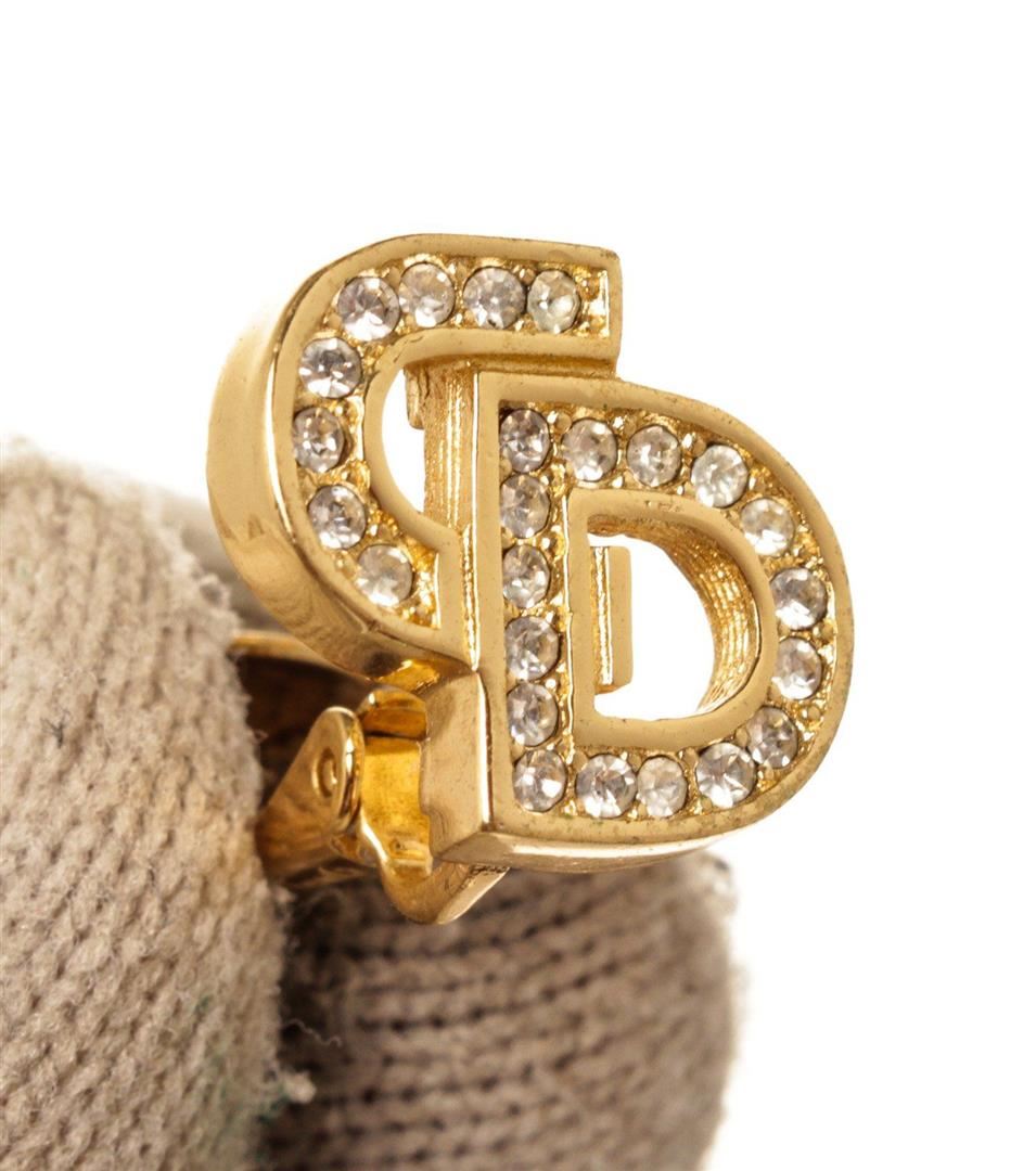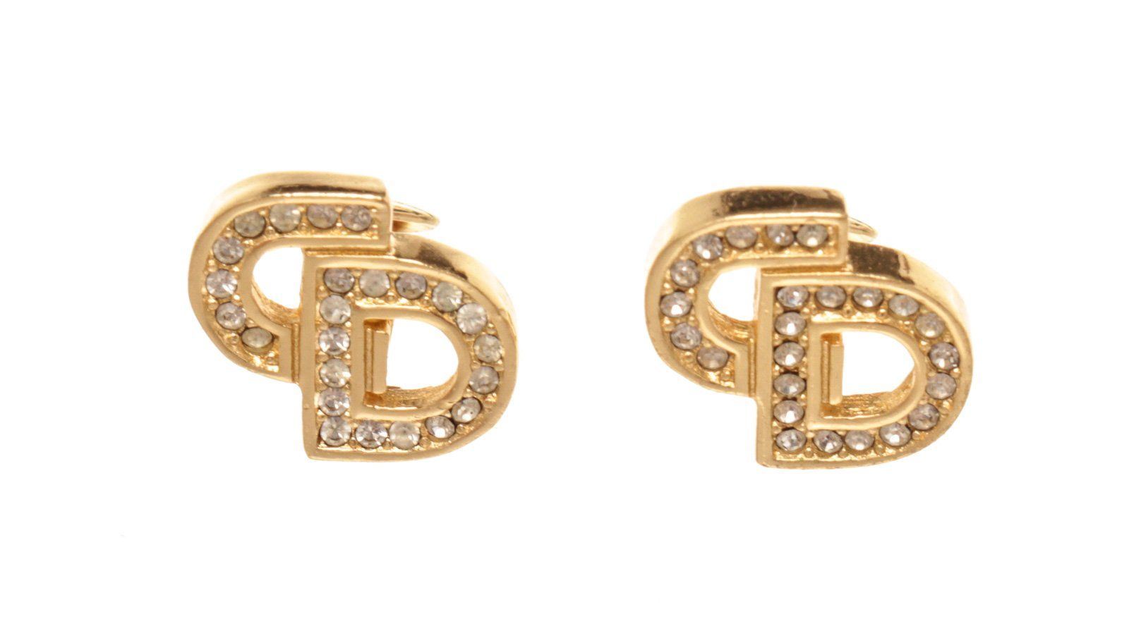 Christian Dior Gold Logo Earrings with gold-tone hardware.