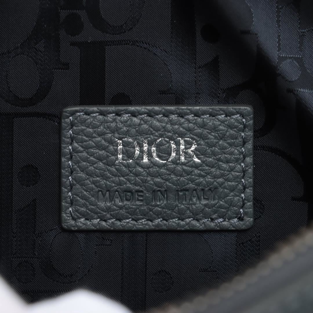 Gray grained Calfskin leather Christian Dior Homme Saddle shoulder bag with black 'Christian Dior Atelier' signature logo, interior lined with Dior Oblique jacquard, engraved 'DIOR' signature on interior, magnetic flap closure with zip, an adjustable 'Chr