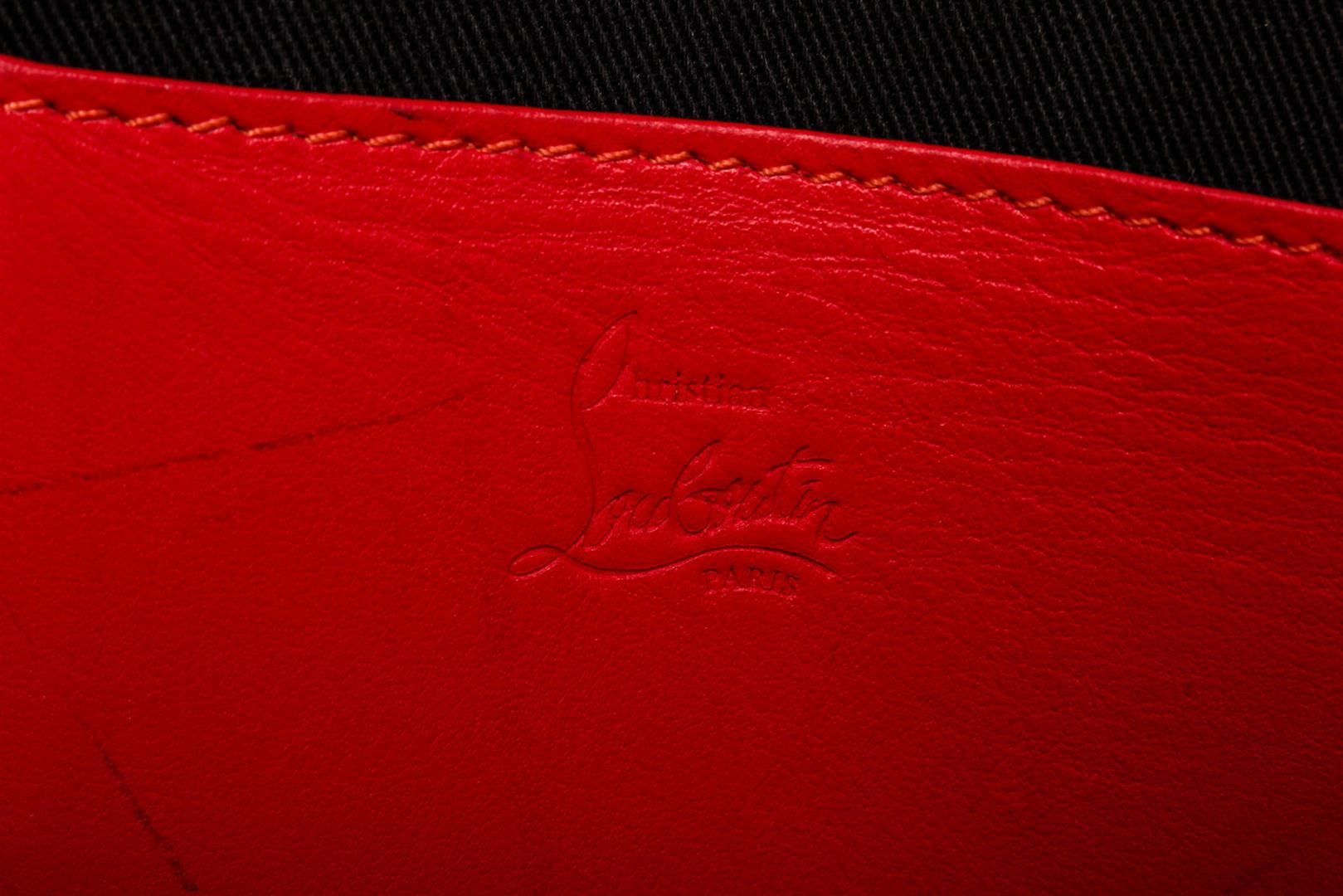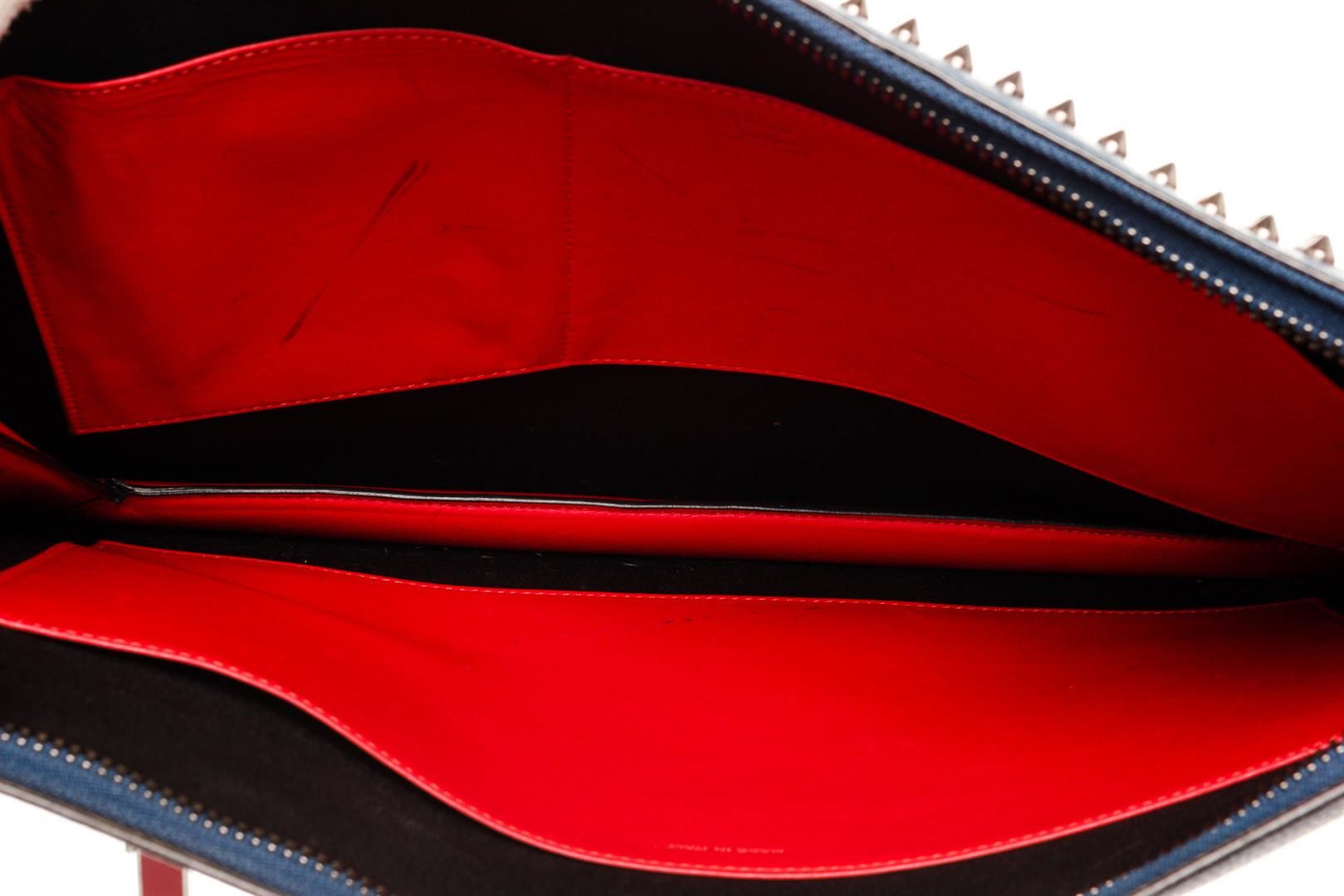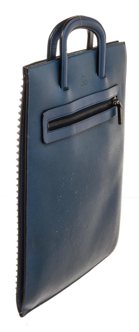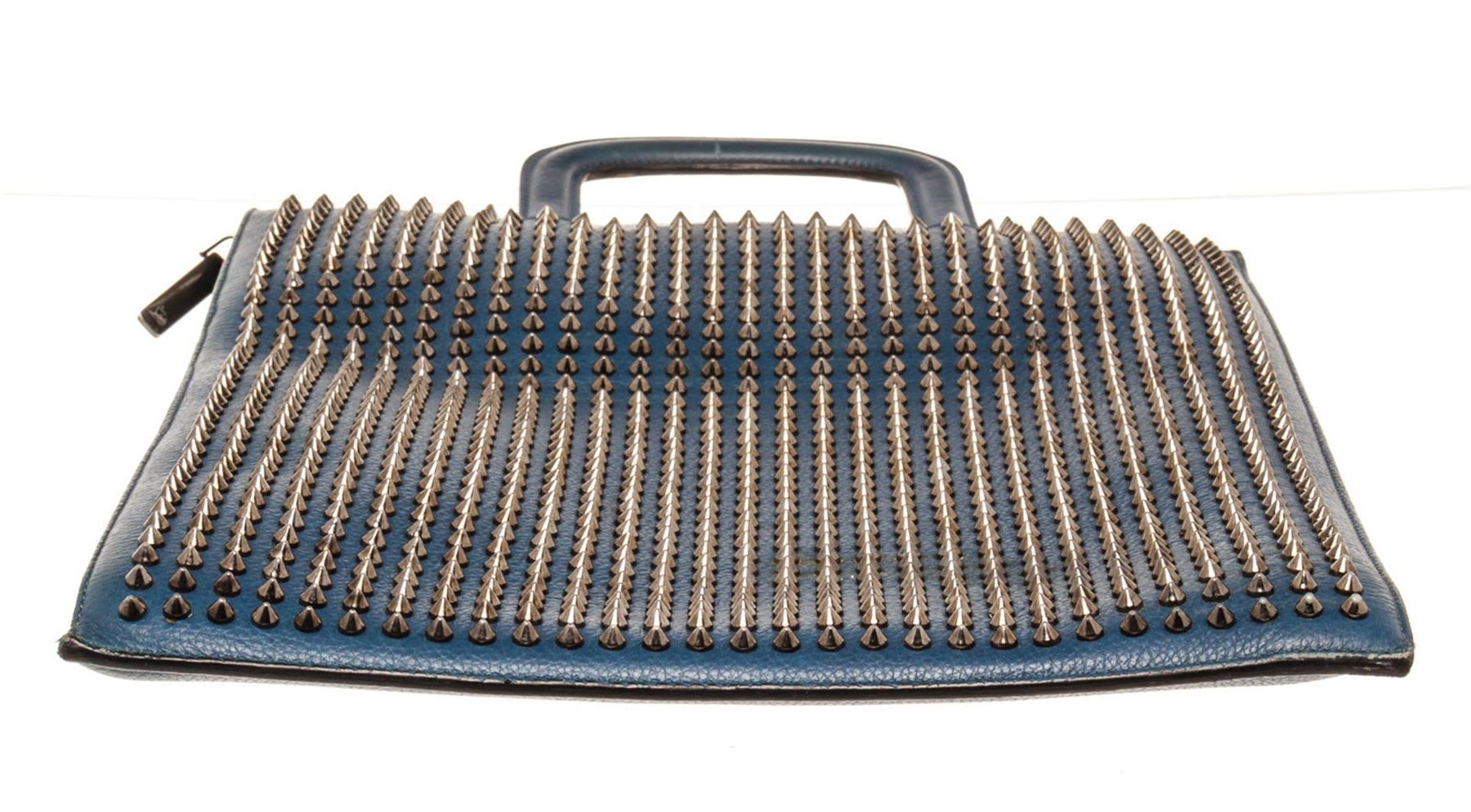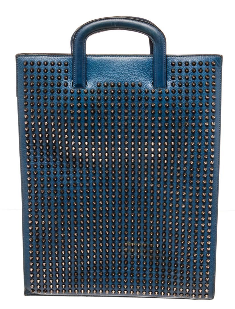 Christian Louboutin Blue Leather Trick Handbag with leather, gold-tone hardware, trim leather, interior slip pocket, dual top handle and zipper closure.