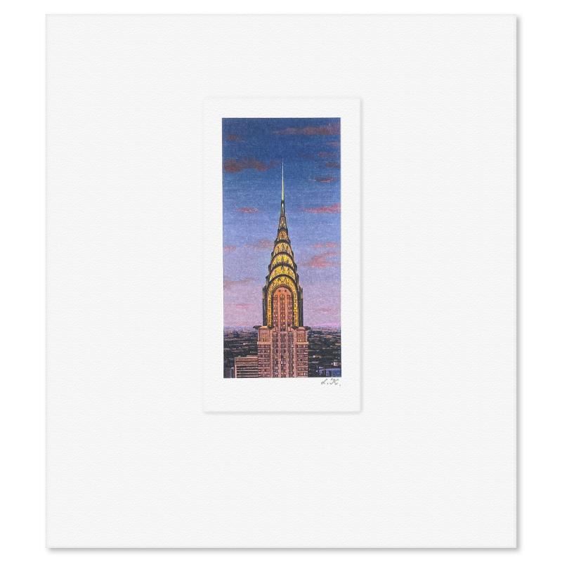 "Chrysler Building" is a limited edition lithograph on paper by Liudmila Kondakova, hand signed by the artist. Includes Letter of Authenticity. Measures approx. 7" x 6" (border), 3.5" x 1.5" (image).