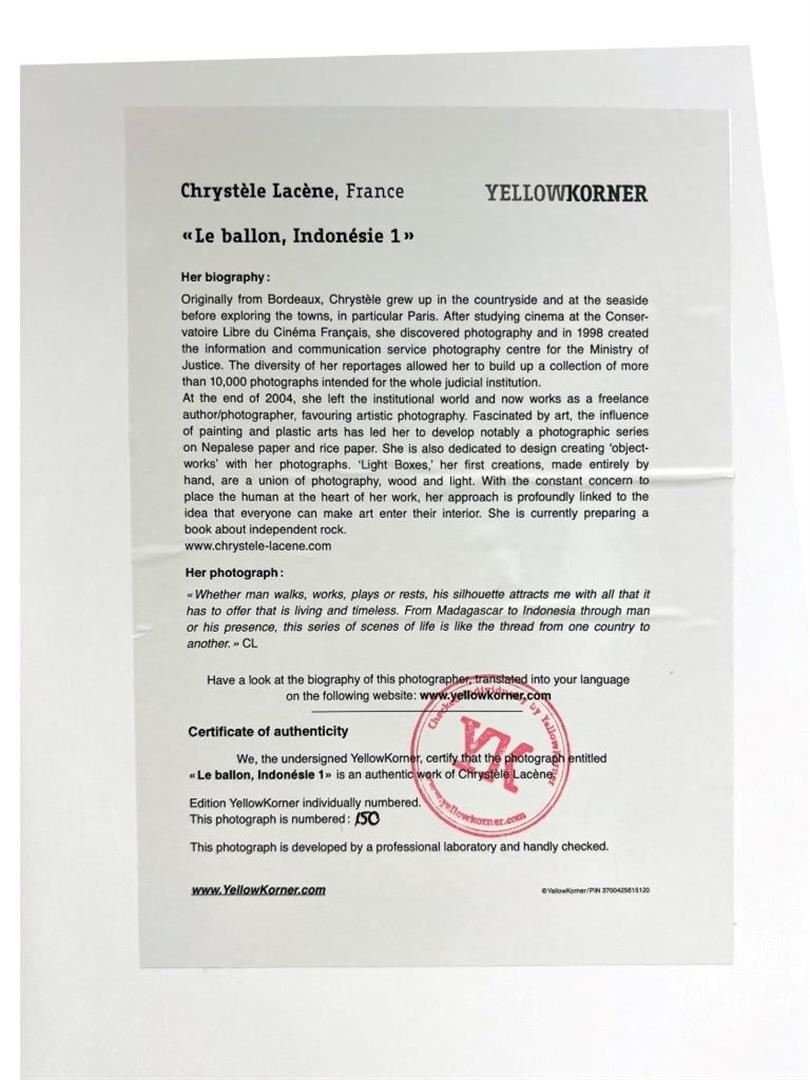 Chrystele Lacene Le Ballon Indonesia Soccer Ball on Beach YellowKorner Certified Photograph. Certificate of Authenticity from YellowKorner affixed to the back. Matted Dimensions 16"x20". Protected with Clear Mylar Sleeve.