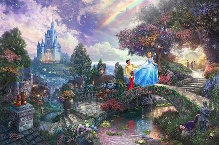 Cinderella Wishes Upon a Dream by Thomas Kinkade. Unframed and stretched on Limited Edition enhanced canvas. Comes with certificate of Authenticity! Dimension (inches): 18x27
