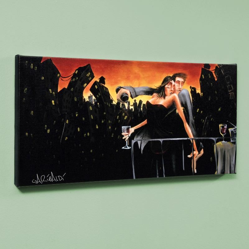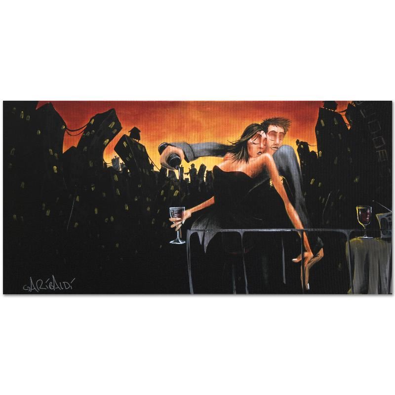 Combining his passions for music and art, David Garibaldi creates visual poetry. "City Lights & Love" is a limited edition giclee on stretched canvas, E numbered and bearing the artist's authorized signature. This piece is gallery wrapped and ready to hang. Includes Certificate of Authenticity! Measures approx. 48" x 24" (image).
