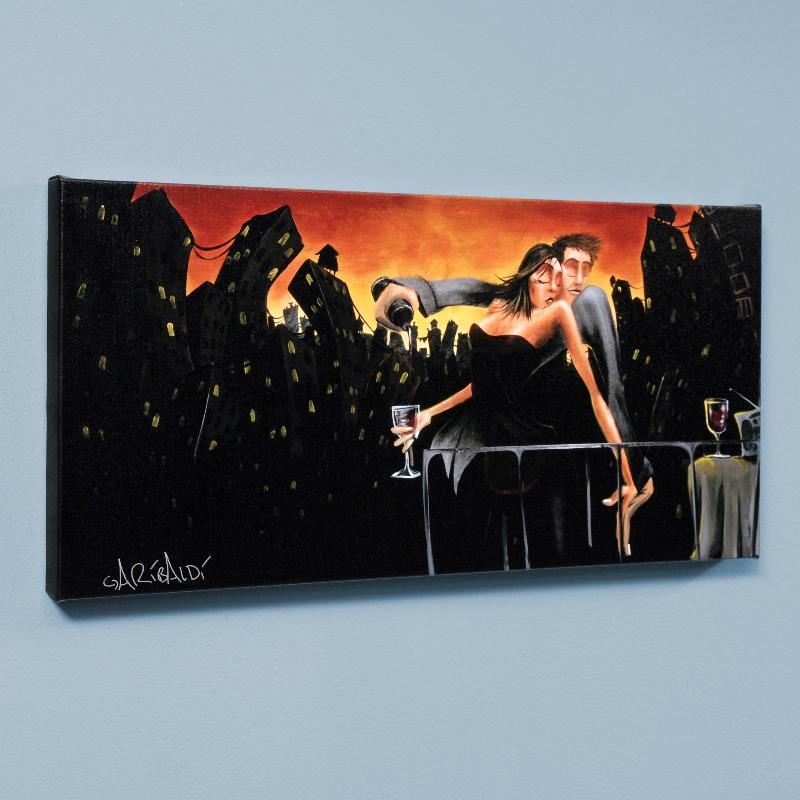 Combining his passions for music and art, David Garibaldi creates visual poetry. "City Lights & Love" is a limited edition giclee on stretched canvas, R numbered and bearing the artist's authorized signature. This piece comes gallery wrapped. Includes Certificate of Authenticity! Measures approx. 24" x 12" (image).