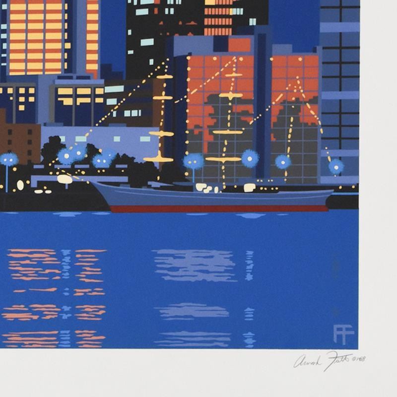 City Lights by Armond Fields (1930-2008). "City Lights" is a limited edition hand pulled original serigraph on paper by Armond Fields (1930-2008), numbered and hand signed by the artist. Includes Letter of Authenticity. Measures approx. 35" x 22" (border), 31" x 17" (image).