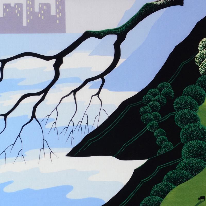 Larissa Holt, a student of distinguished artist Eyvind Earle(1916-2000), uses bold colors and breathtaking scenery to create images of Nature in her own unique style. "City Lights" is a limited edition giclee on stretched canvas by Holt, numbered and bearing Holt's authorized signature. This piece comes gallery wrapped with a black border, and is ready to hang. Includes Certificate of Authenticity! Measures approx. 12.5" x 10" x 1.5" (image).