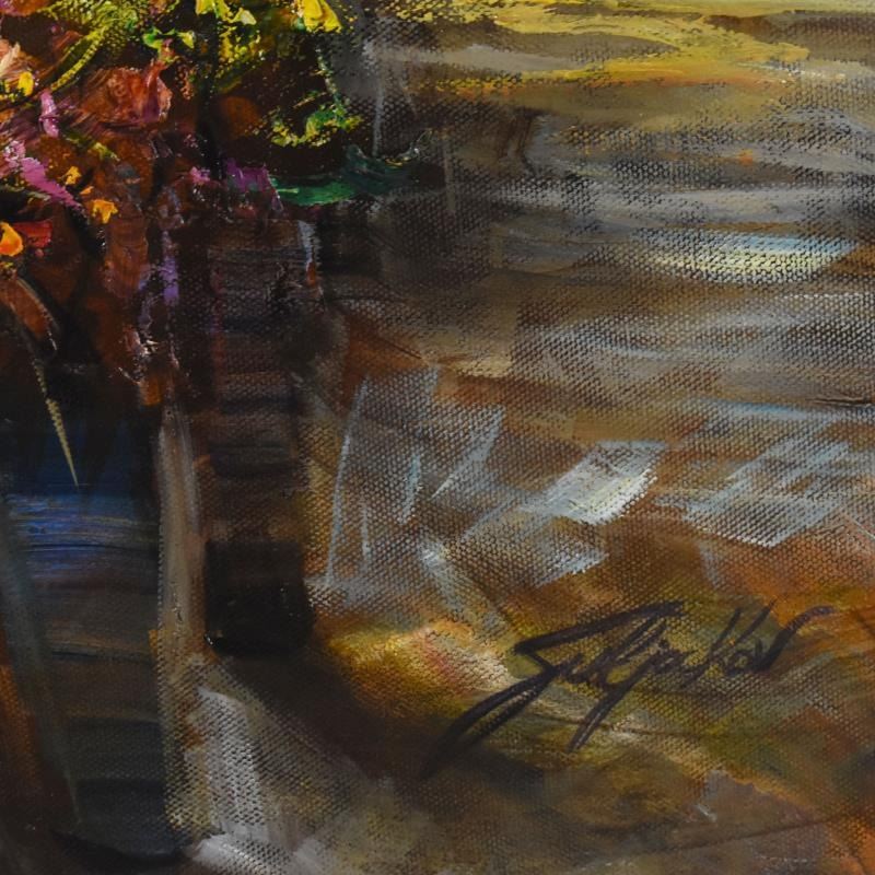 "City Magic" is an original oil painting on stretched canvas by Vadik Suljakov, hand signed by the artist. Includes Letter of Authenticity. Measures approx. 30" x 40" (image).