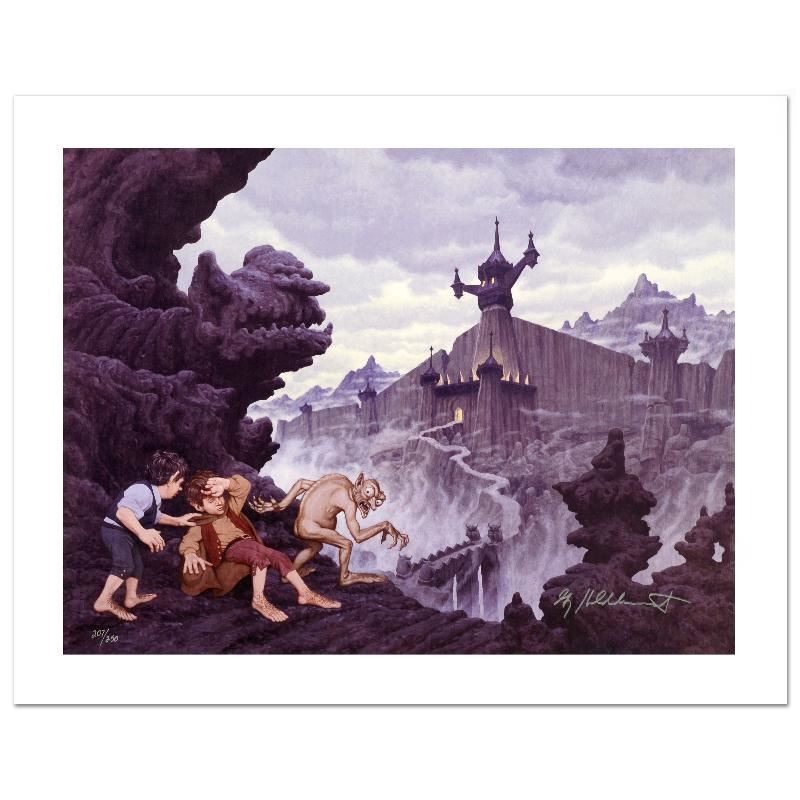Known world wide for their fantasy and science fiction illustrations, identical twin brothers Greg and Tim Hildebrandt created an abundance of fascinating artwork, most notably their illustration work for J.R.R. Tolkien's 'The Hobbit' and 'Lord of the Rings'. "City Of The Ringwraiths", originally created in the 1970's for Ballantine Books, is a limited edition giclee on canvas, numbered and hand signed by Greg Hildebrandt! Includes Certificate of Authenticity! Measures approx. 28" x 21" (image).