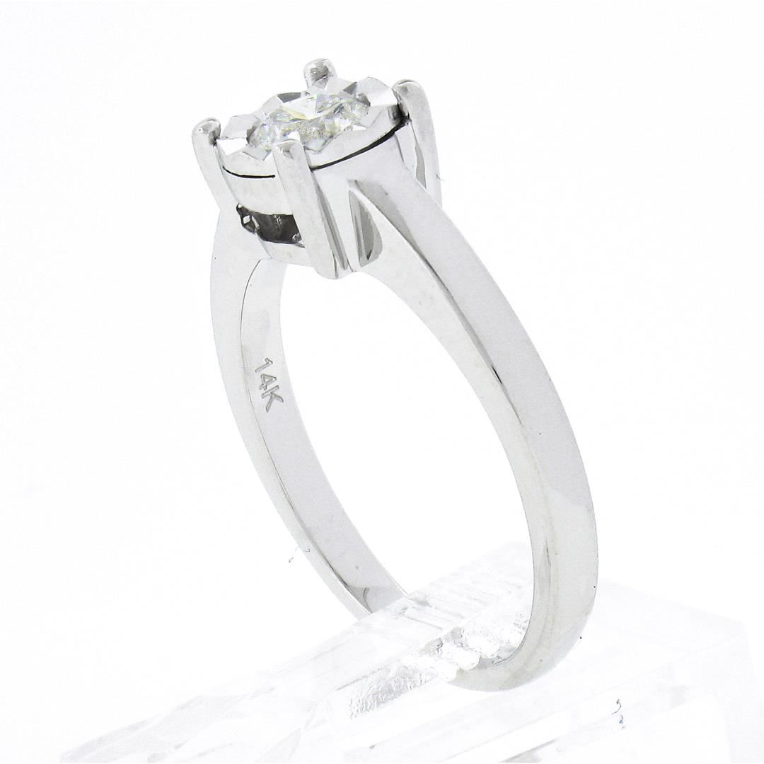 A solid 14k white gold classic engagement ring, with 1 round brilliant cut natural diamond (G - I1 ; 0.35ct). The ring is size 7.0, weighs a total of 3.91 grams, and measures 6.95mm wide.