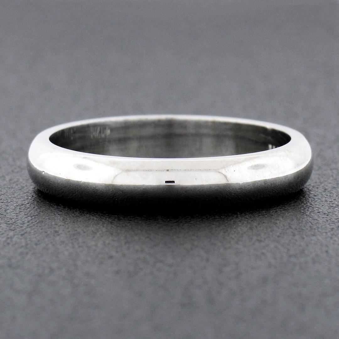 A 14k white gold stackable band ring.The ring is size 6.0, weighs a total of 3.38 grams, and measures 3.4mm wide.