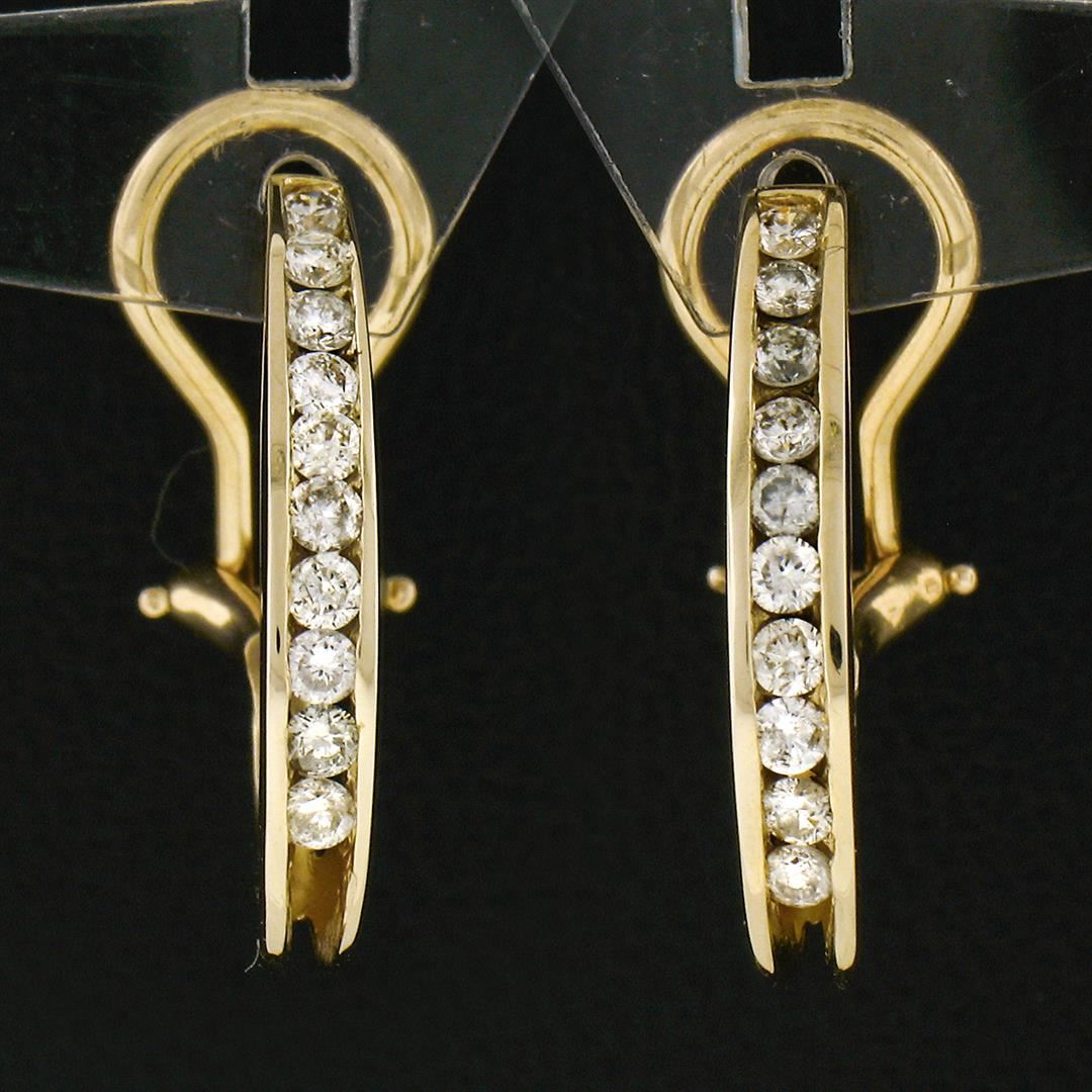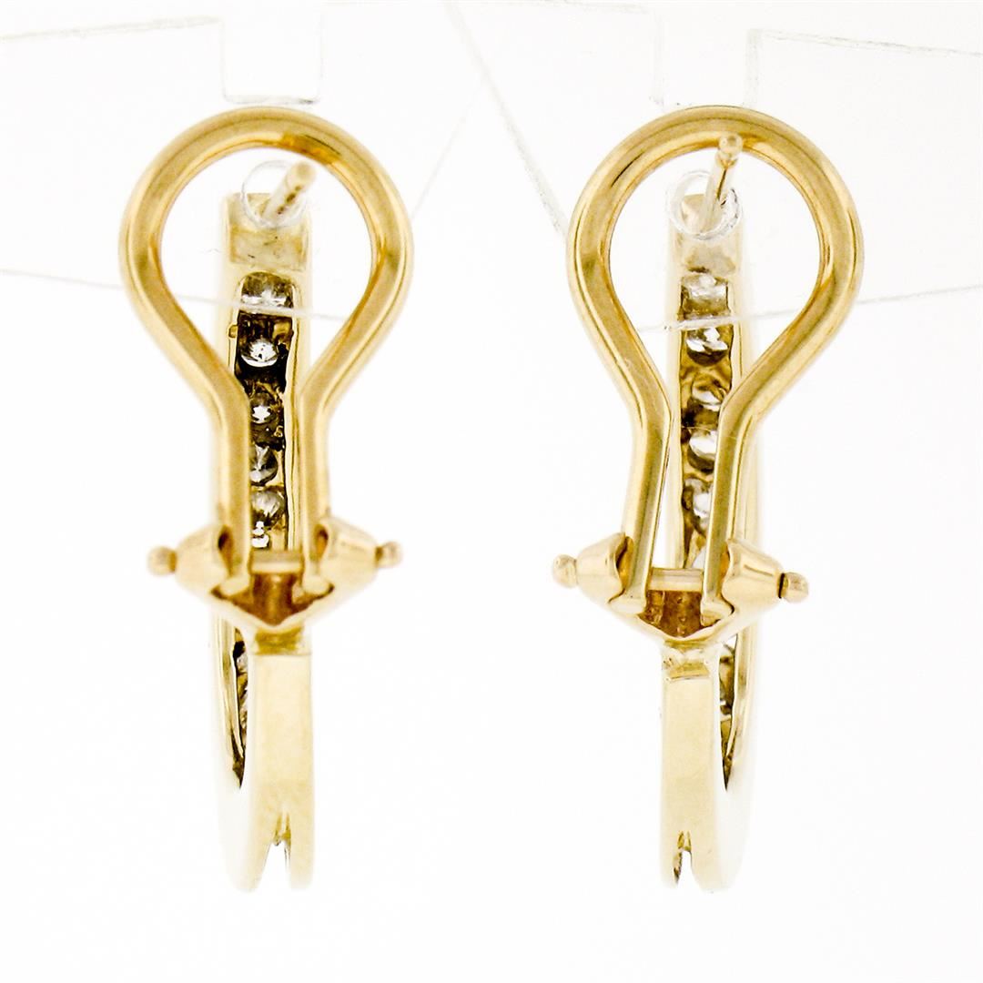 Classic 14K Yellow Gold 0.60 ctw Round Channel Diamond Huggie Cuff Omega Earring
