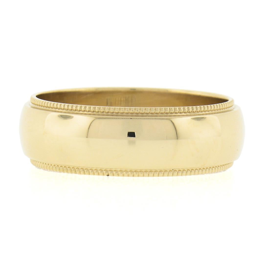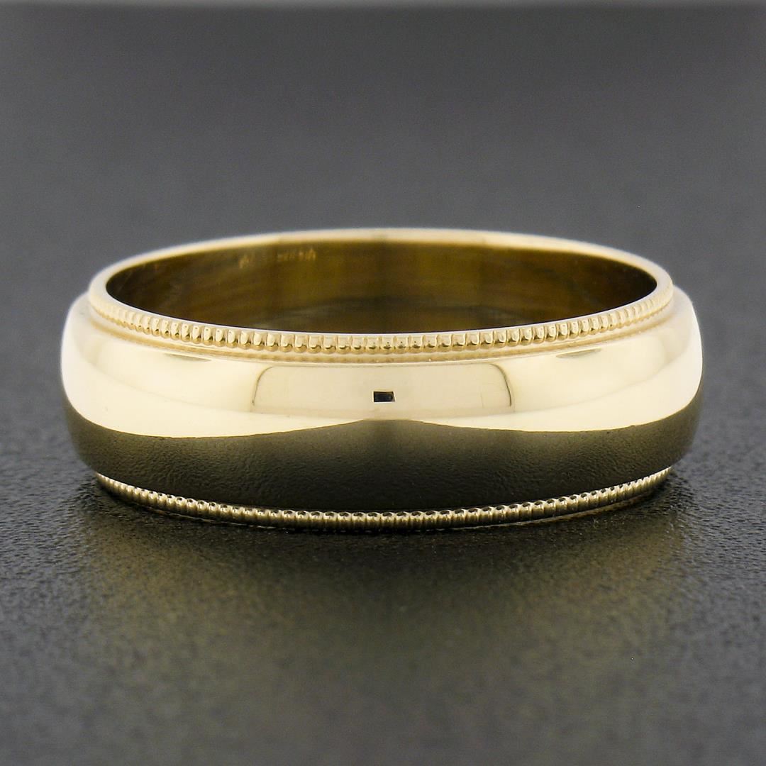 A solid 14k yellow gold band ring. The ring is size 6.0, weighs a total of 5.5 grams, and measures 6mm wide.