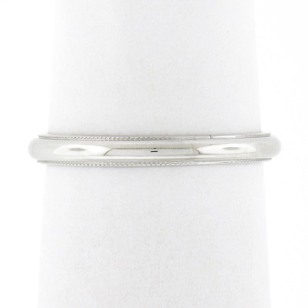 A solid 14k white gold band ring. The ring is size 4.5, weighs a total of 1.40 grams, and measures 2.2mm wide.