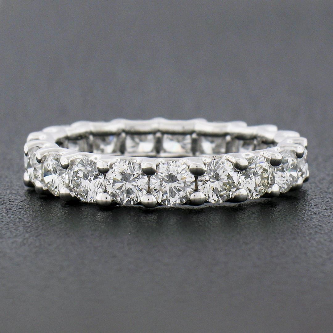 A solid 14k white gold eternity band ring, with 19 round brilliant cut natural diamonds (G/H - SI1/SI2 ; 2.94ctw). The ring is size 8.0, weighs a total of 3.10 grams, and measures 4mm wide.