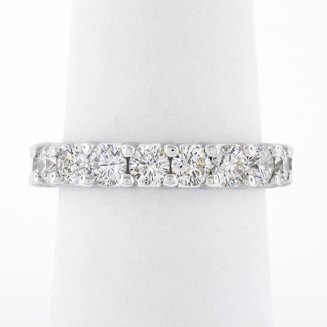 A solid 14k white gold eternity band ring, with 19 round brilliant cut natural diamonds (G/H - SI1/SI2 ; 2.94ctw). The ring is size 8.0, weighs a total of 3.10 grams, and measures 4mm wide.