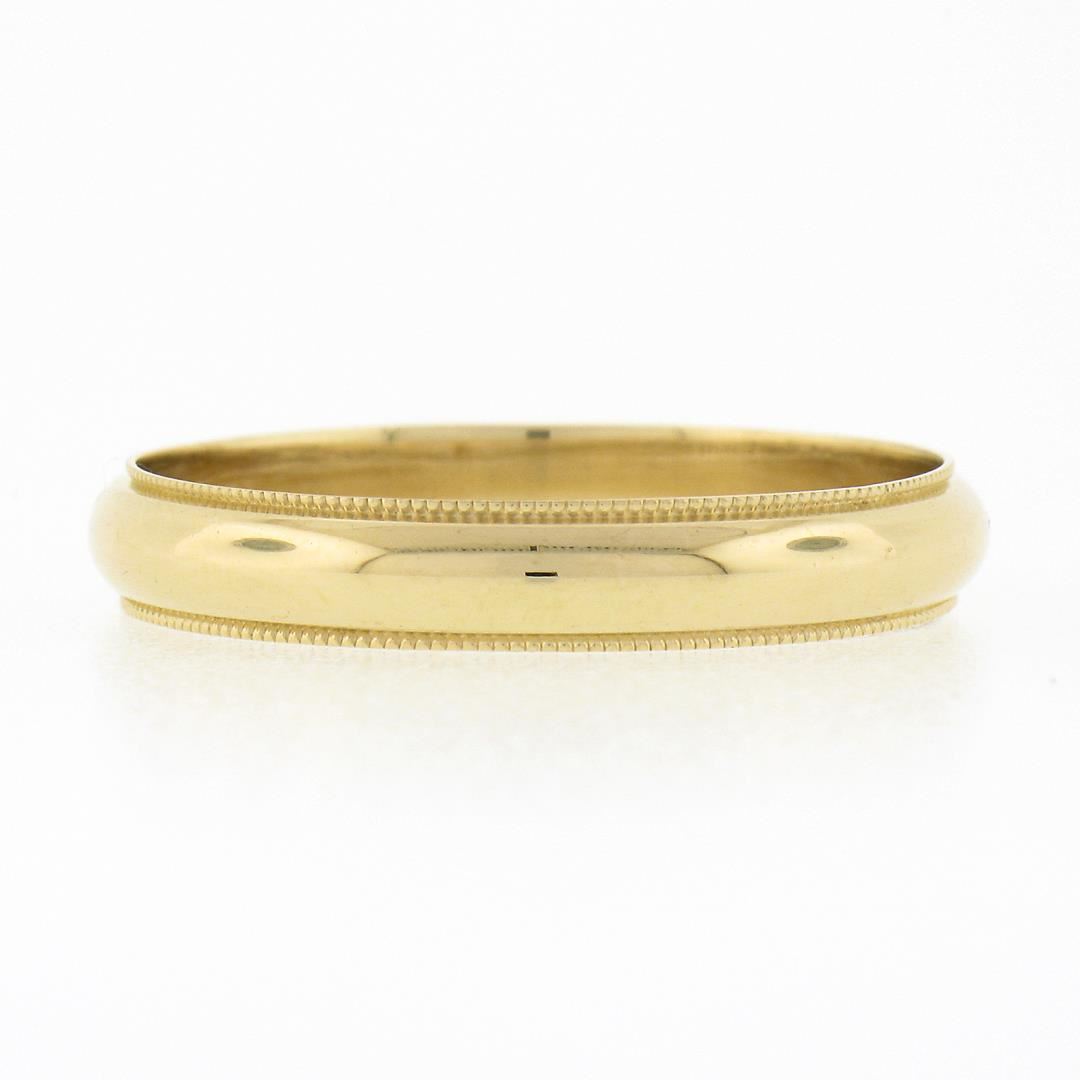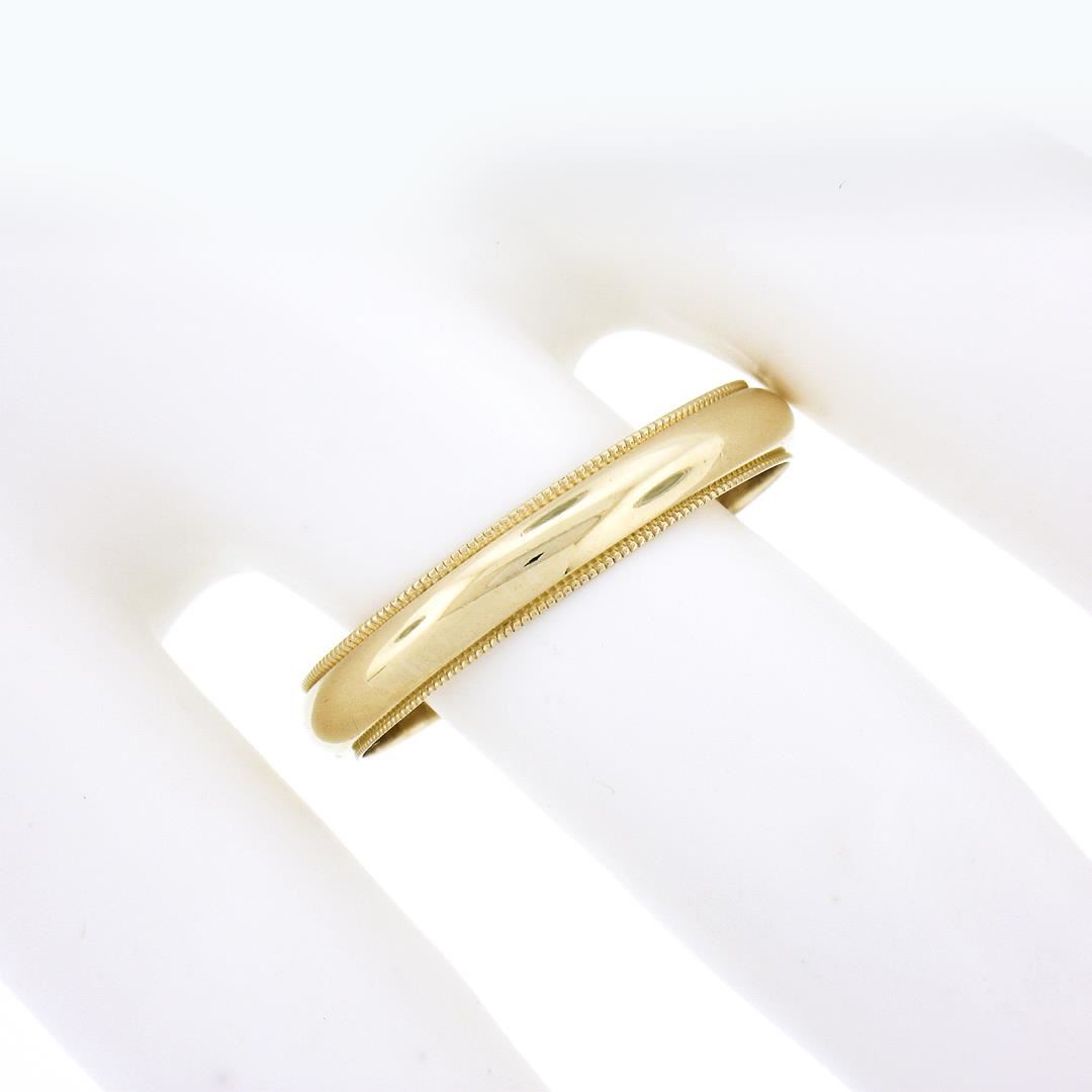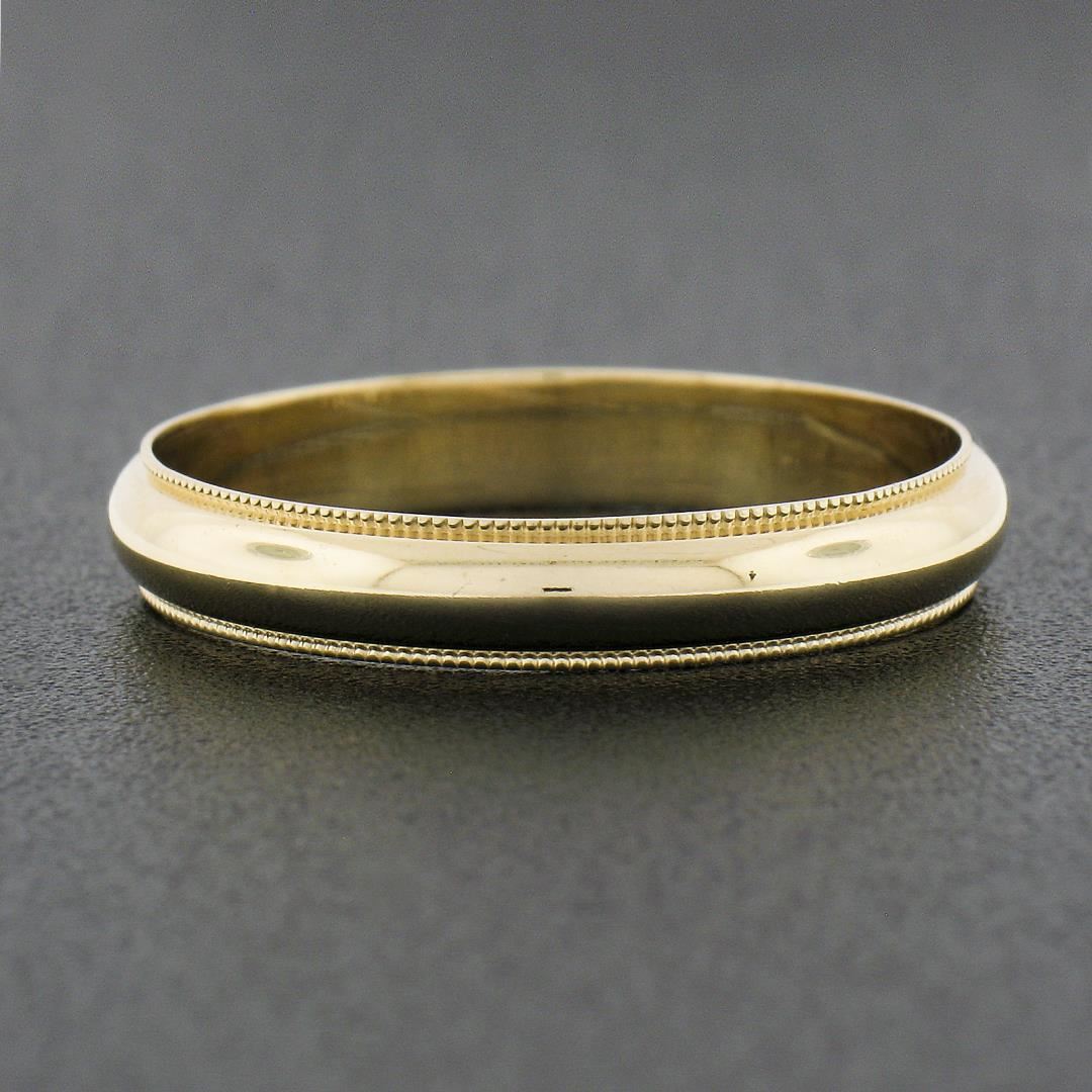 A solid 14k yellow gold classic milgraing wedding band ring. The ring is size 11.0, weighs a total of 3.03 grams, and measures 3.8mm wide.