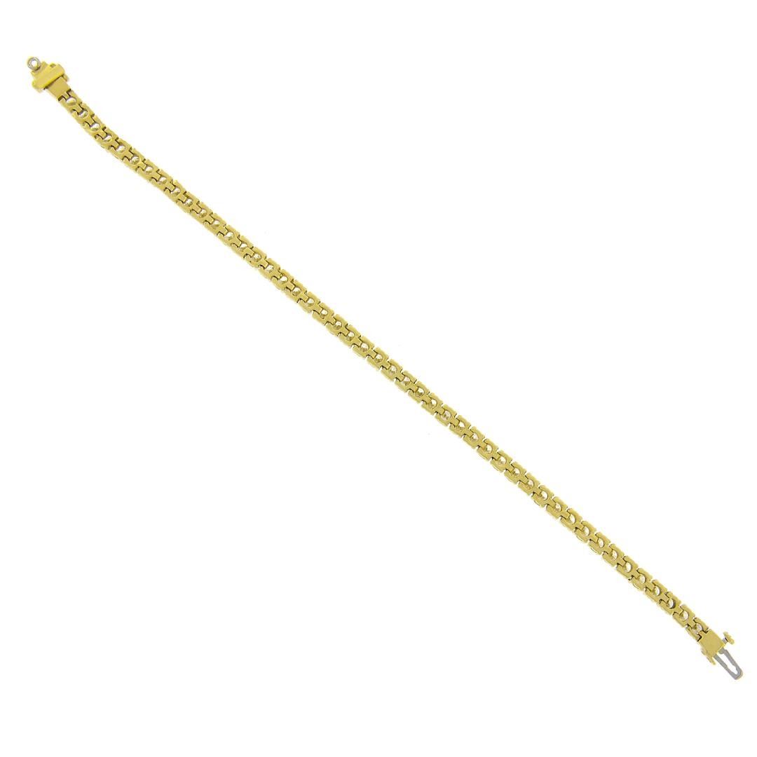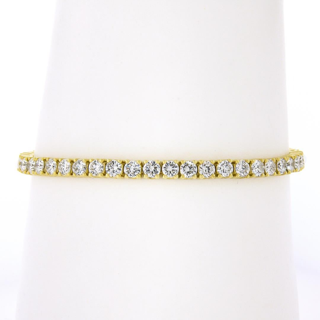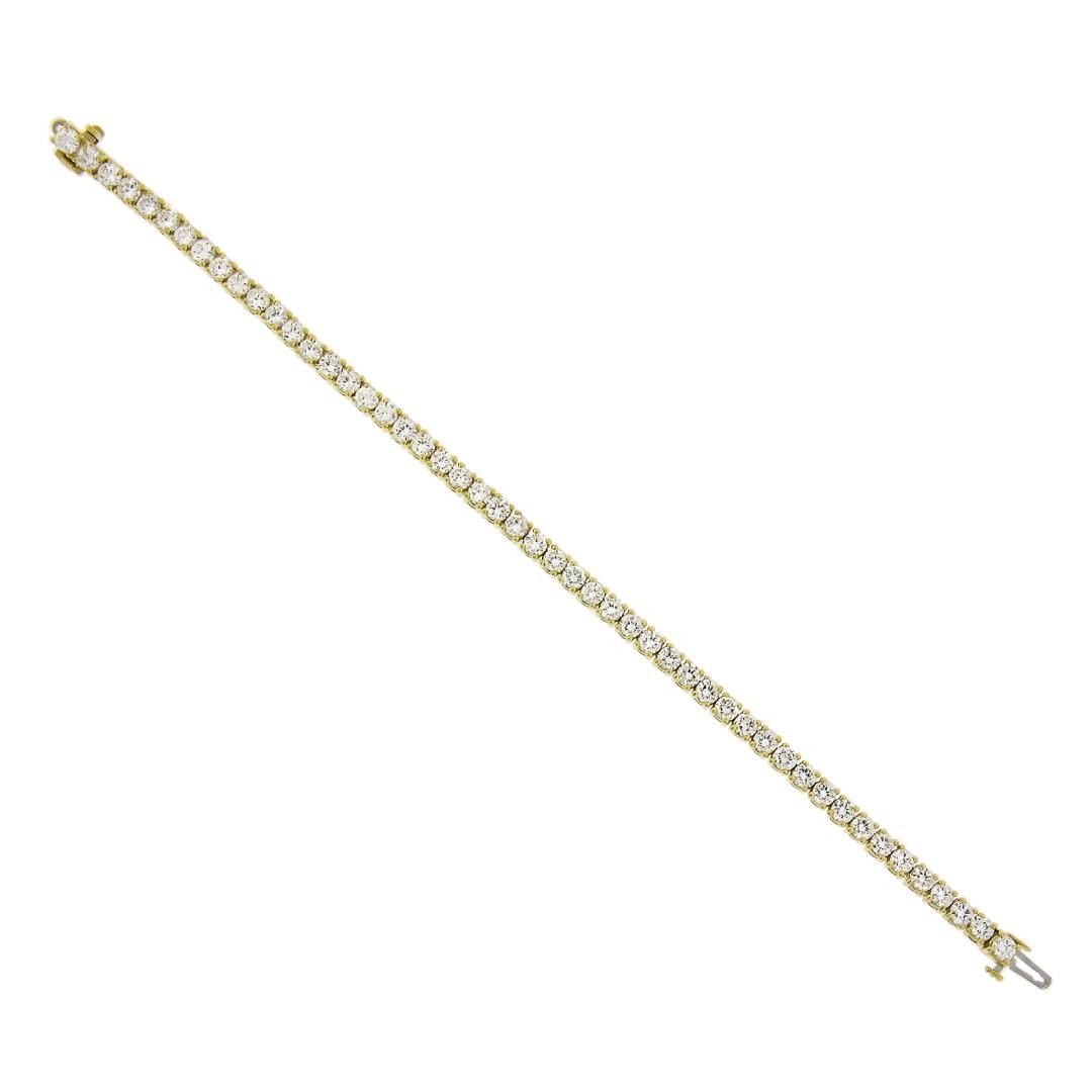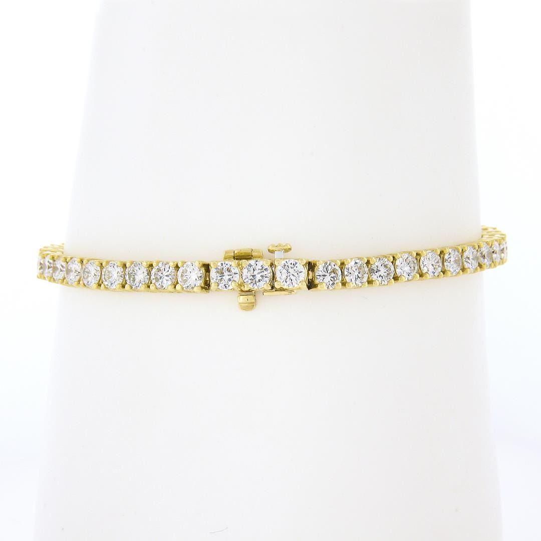 A solid 18k yellow gold tennis bracelet. with 50 round cut natural dimaonds (G/H - VS1/VS2 Few SI ; 7.50ctw ). It weighs a total of 16.65 grams, measures 3.7mm wide, and measures 7.0 inches in length.