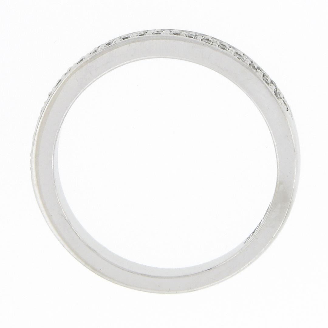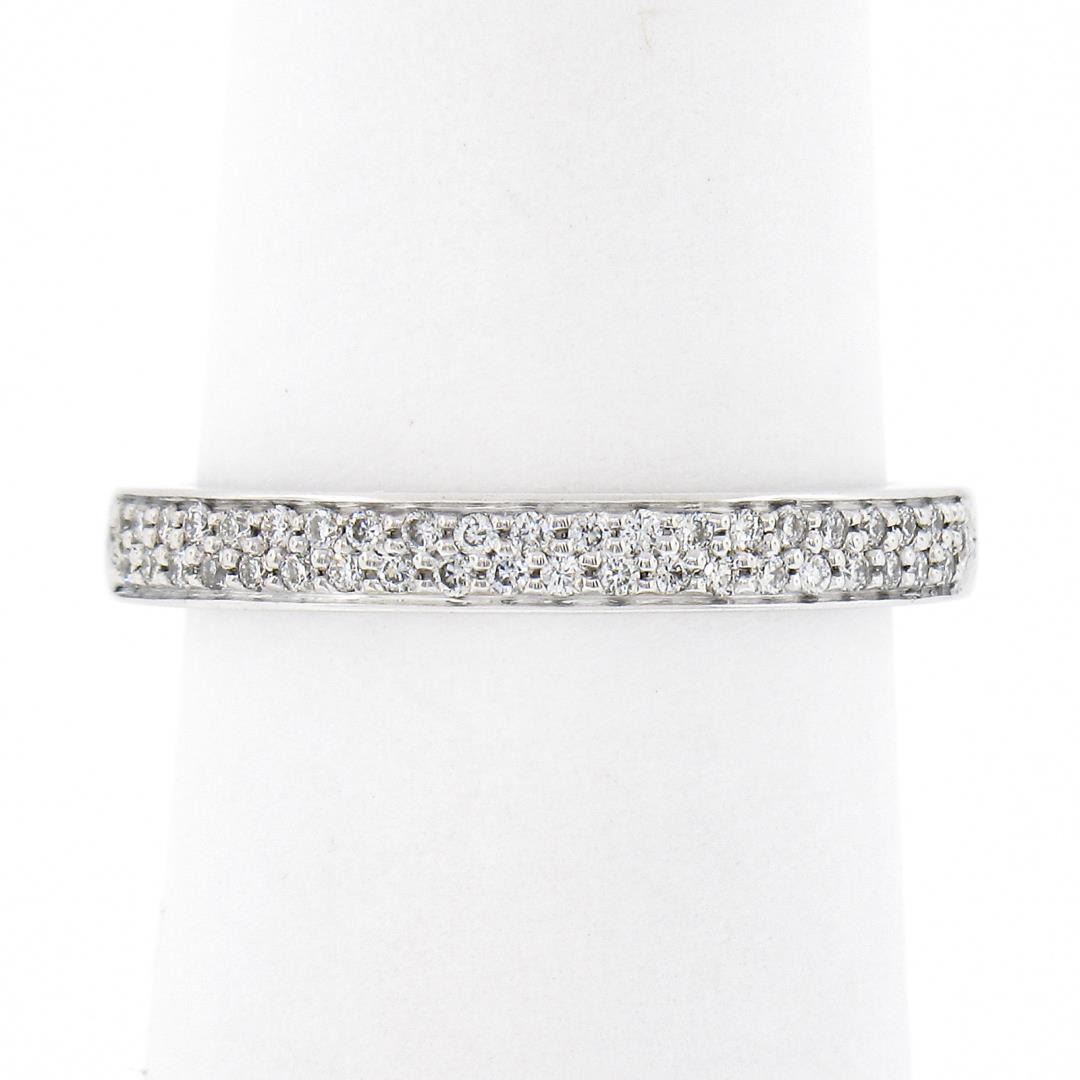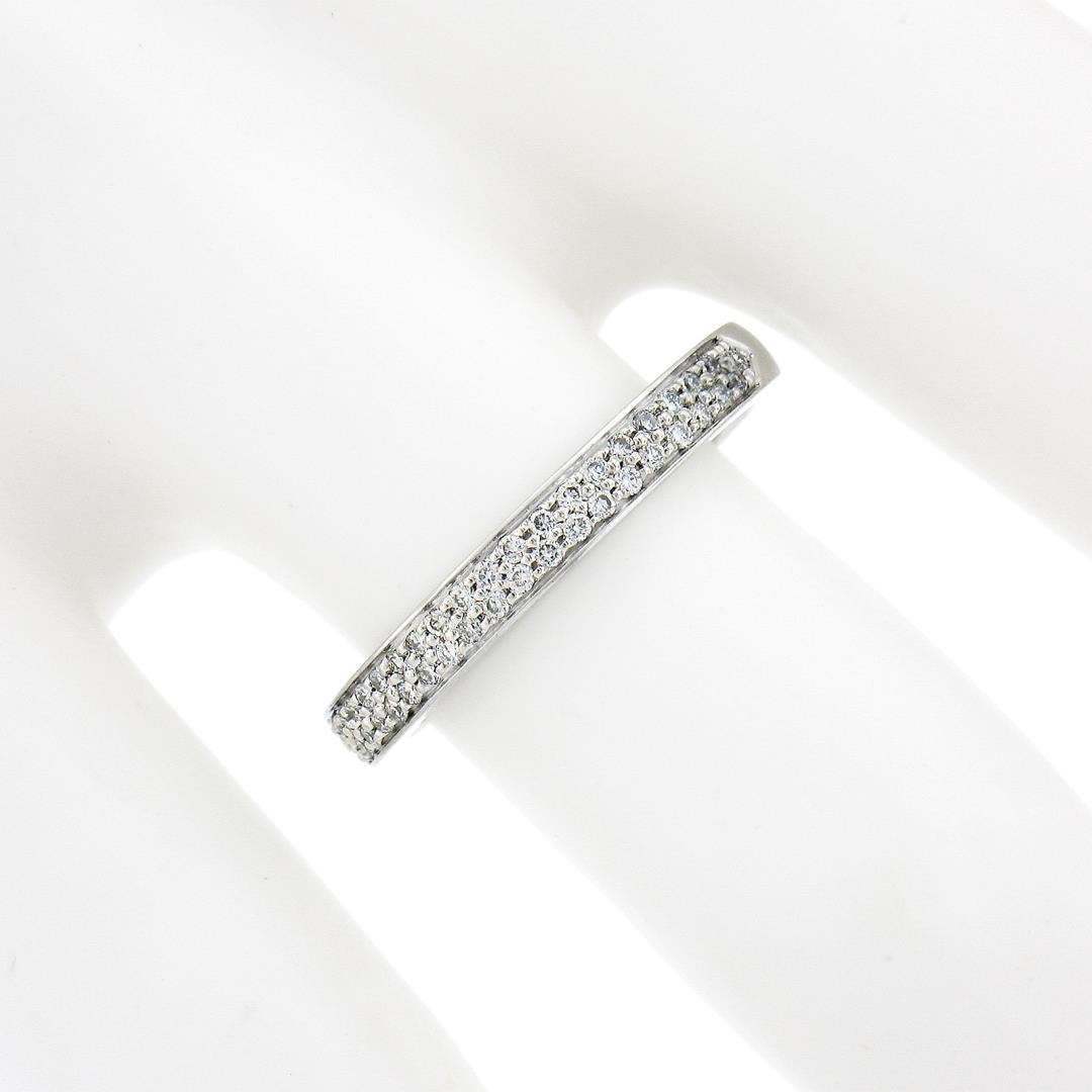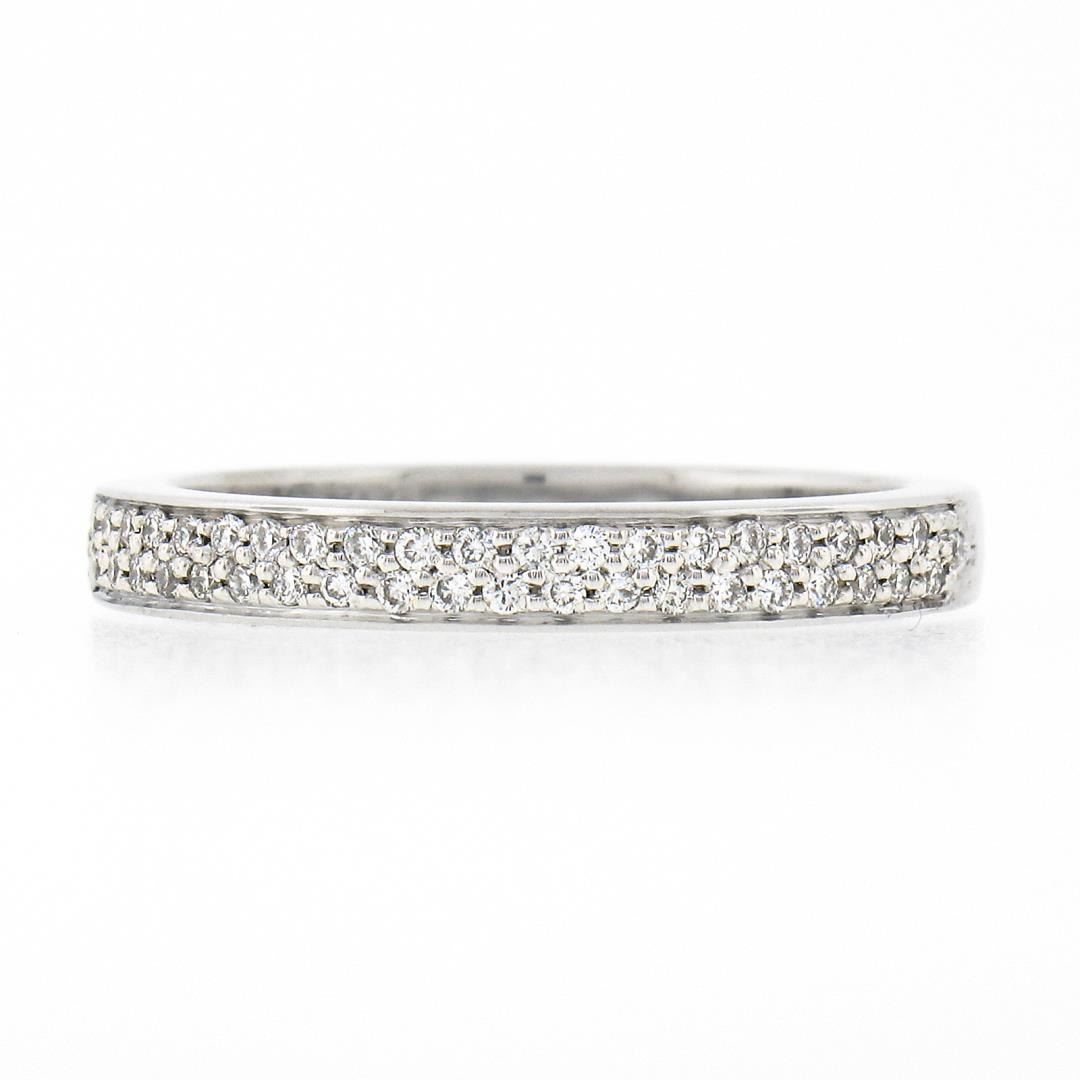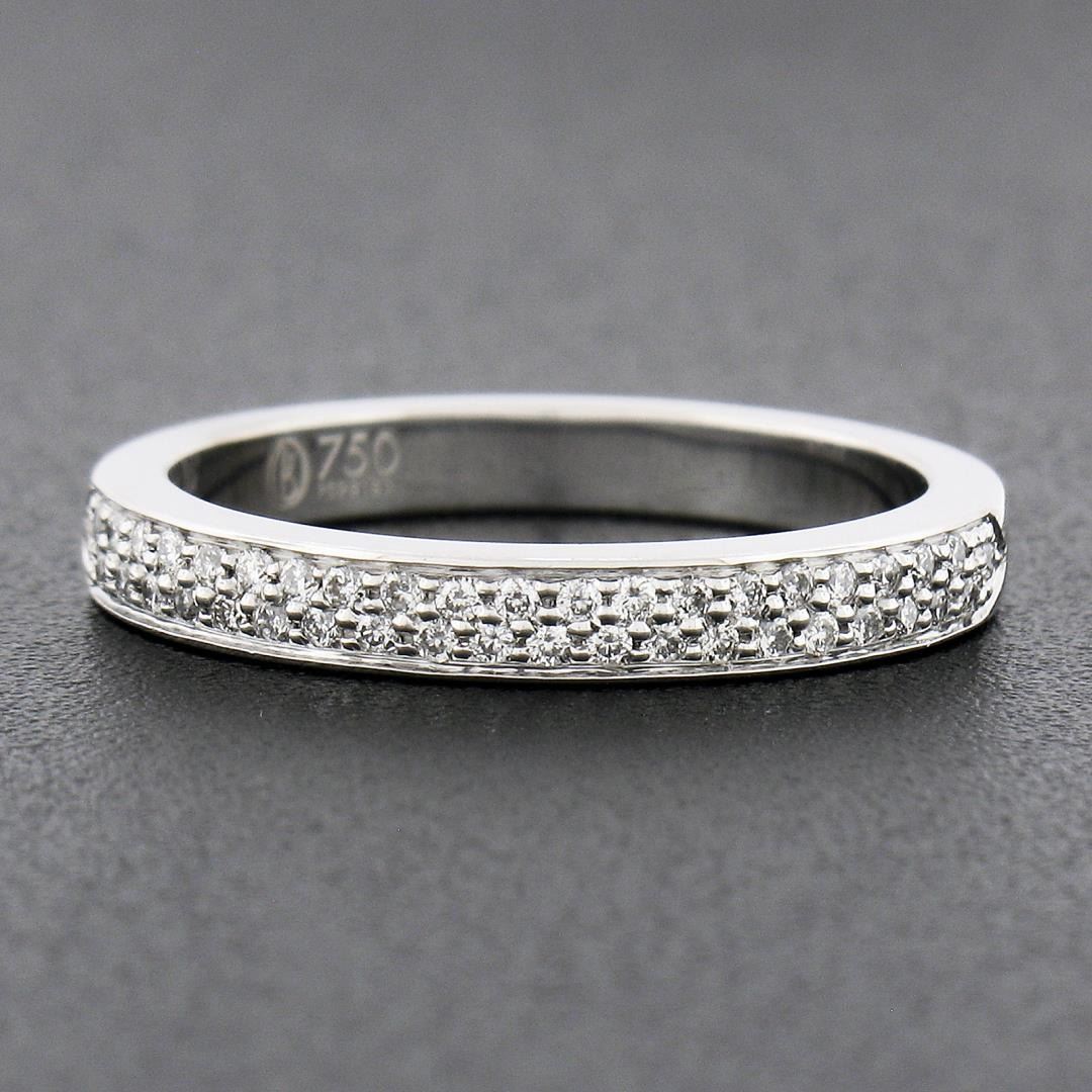 A solid 18k white gold band ring, with 42 round brilliant cut natural diamonds (G/H - VS2/SI1 ; 0.15ctw). The ring is size 6.0, weighs a total of 3.74 grams, and measures 2.75mm wide.