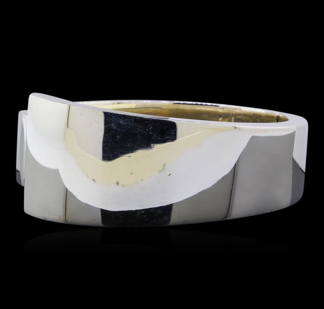 One of a kind high fashion sterling silver bracelet weighing 80.9 grams. This sterling silver promises a lasting shine.