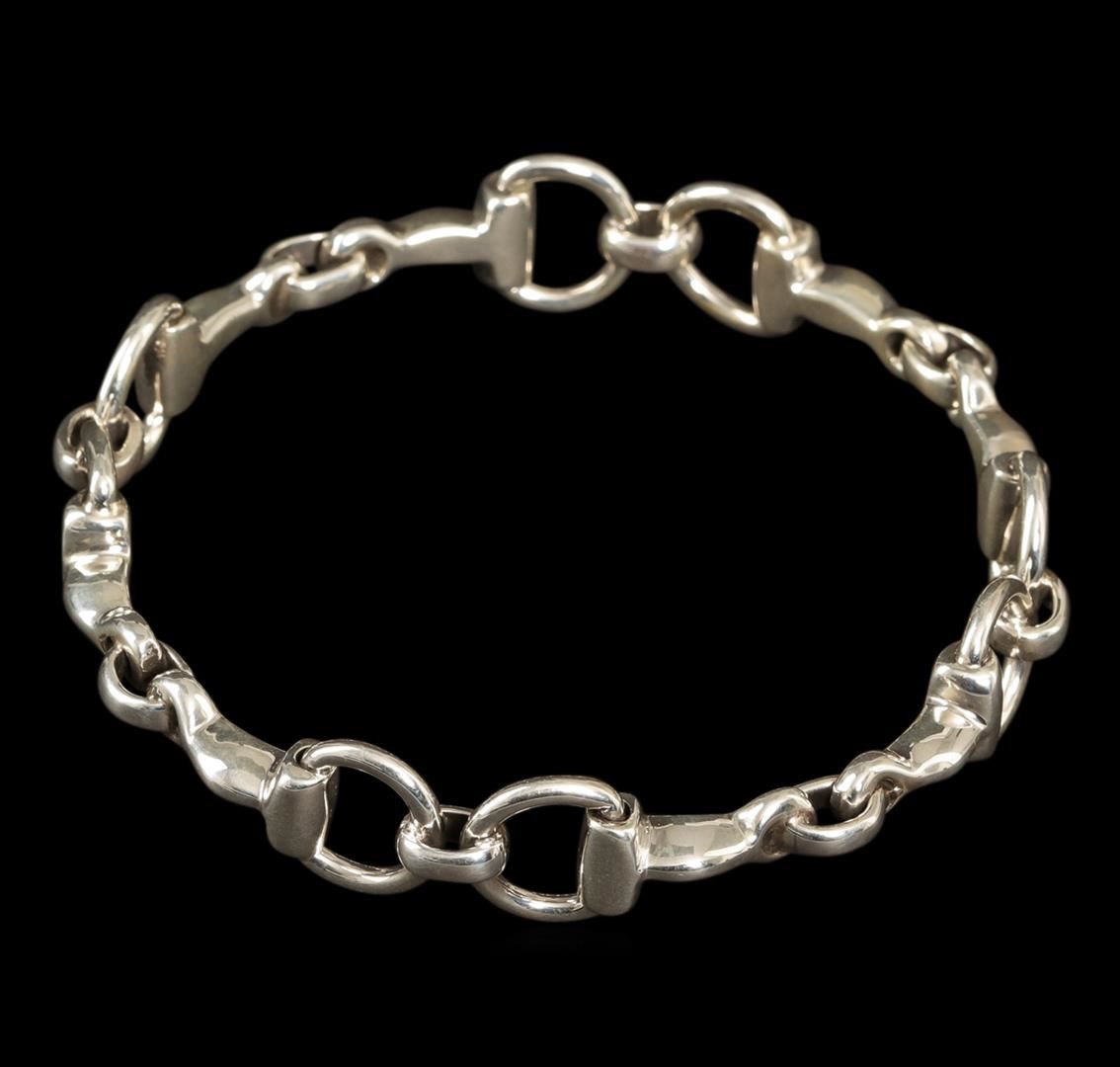 One of a kind high fashion sterling silver bracelet weighing 36.9 grams. This sterling silver promises a lasting shine.
