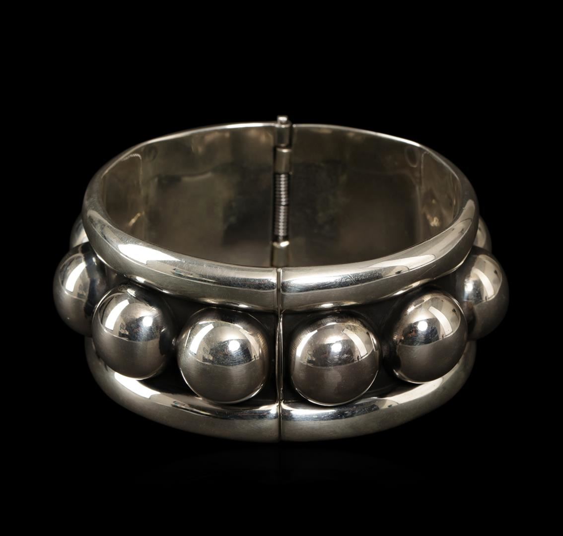 One of a kind high fashion sterling silver bracelet weighing 109.2 grams. This sterling silver promises a lasting shine.