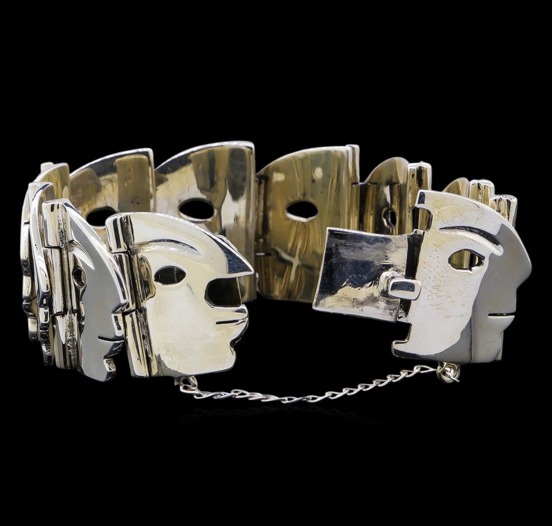 One of a kind high fashion sterling silver bracelet weighing 91.1 grams. This sterling silver promises a lasting shine.