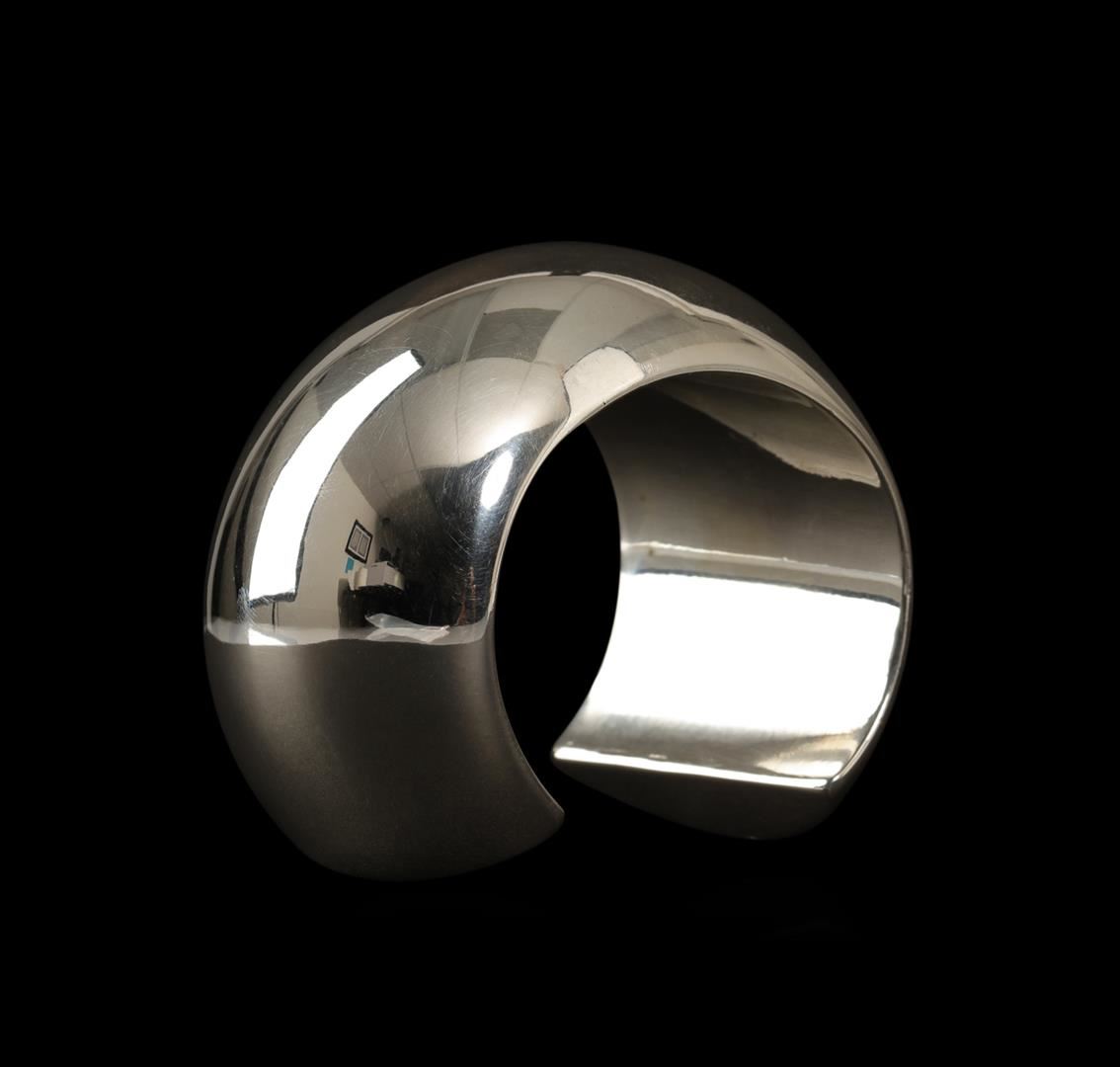 One of a kind high fashion sterling silver cuff bracelet weighing 113.4 grams. This sterling silver promises a lasting shine.