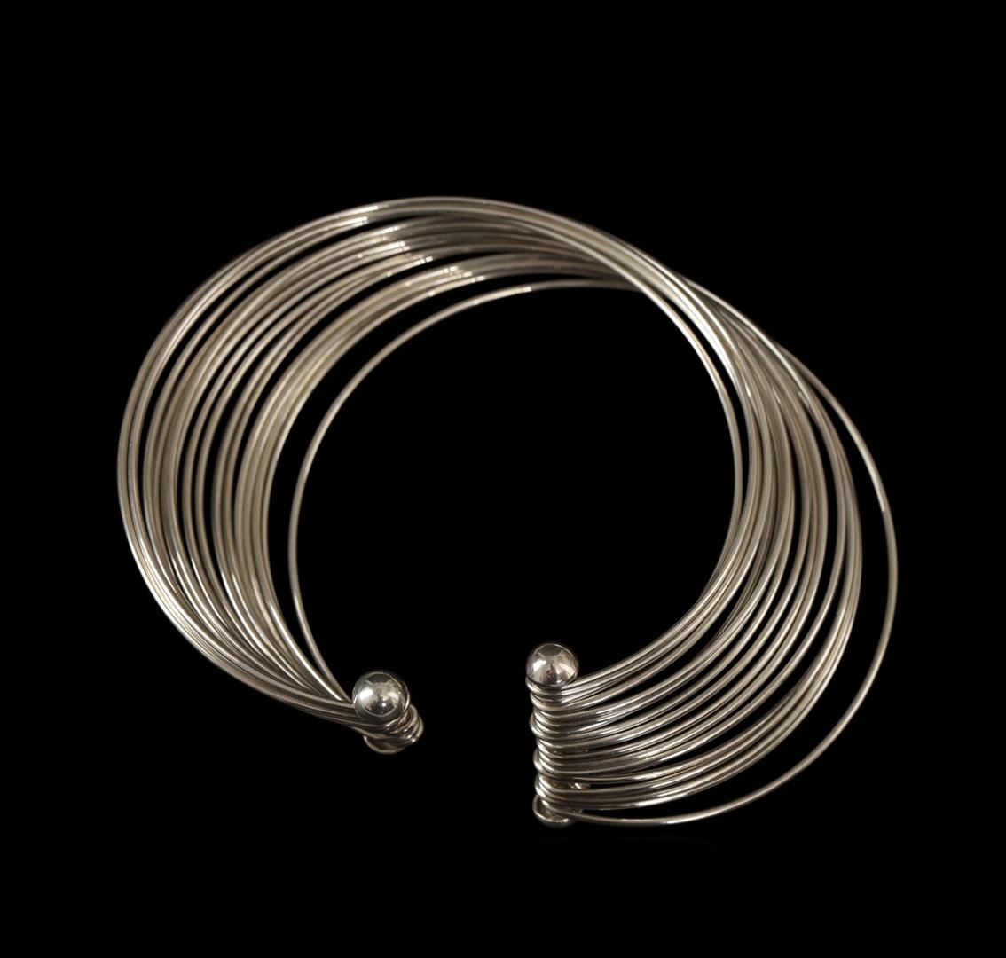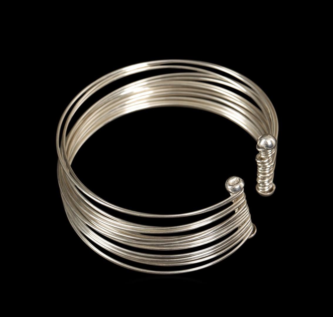 One of a kind high fashion sterling silver cuff bracelet weighing 21.4 grams. This sterling silver promises a lasting shine.