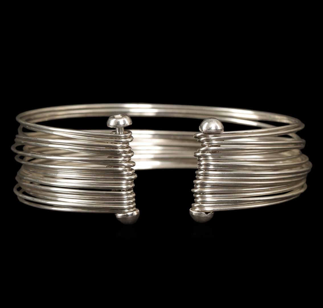 One of a kind high fashion sterling silver cuff bracelet weighing 21.4 grams. This sterling silver promises a lasting shine.