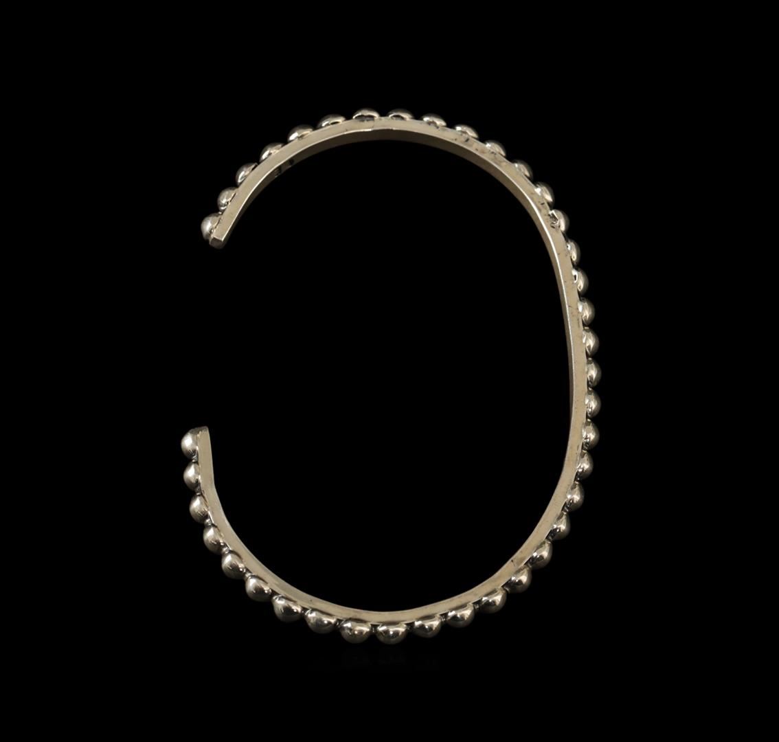 One of a kind high fashion sterling silver cuff bracelet weighing 36.5 grams. This sterling silver promises a lasting shine.