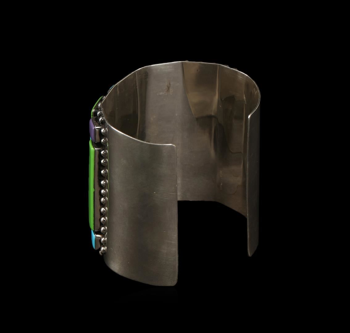 One of a kind high fashion sterling silver cuff bracelet weighing 130.5 grams. This sterling silver promises a lasting shine.