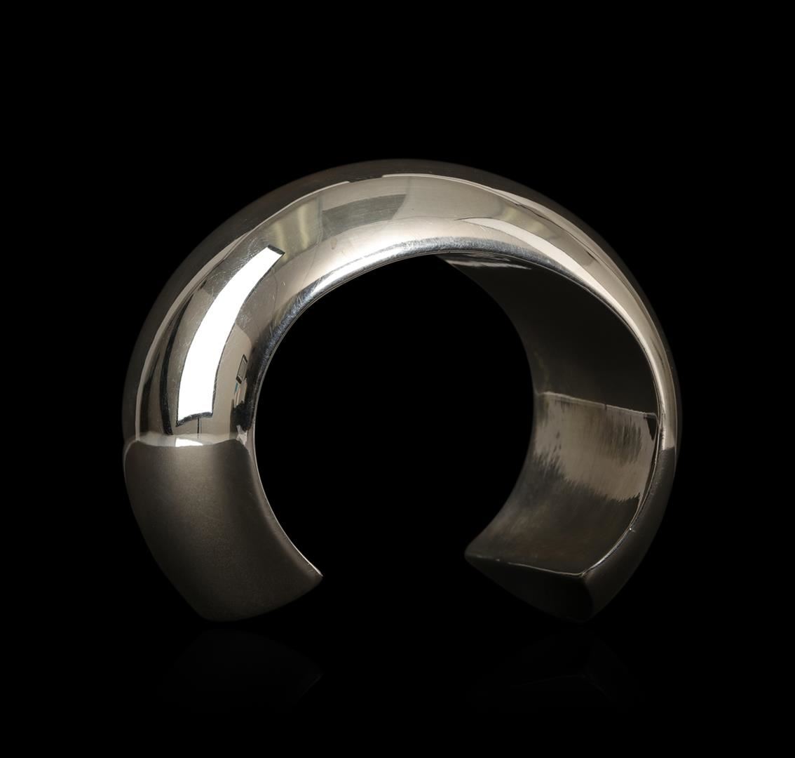One of a kind high fashion sterling silver cuff bracelet weighing 113.4 grams. This sterling silver promises a lasting shine.