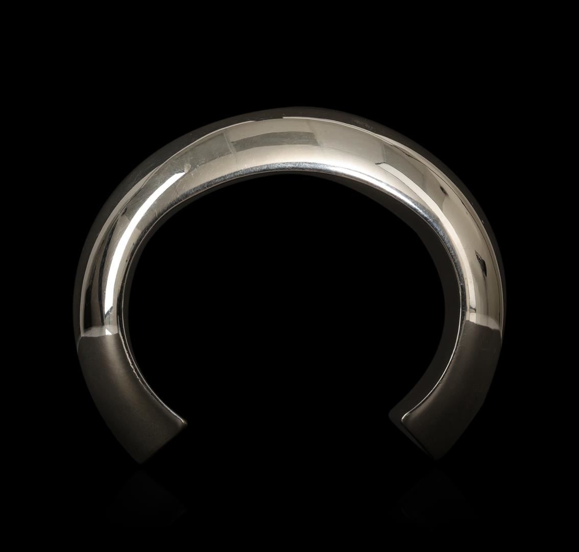 One of a kind high fashion sterling silver cuff bracelet weighing 113.4 grams. This sterling silver promises a lasting shine.
