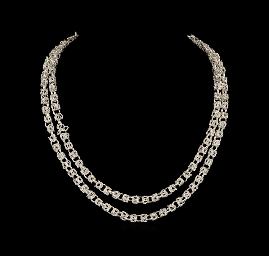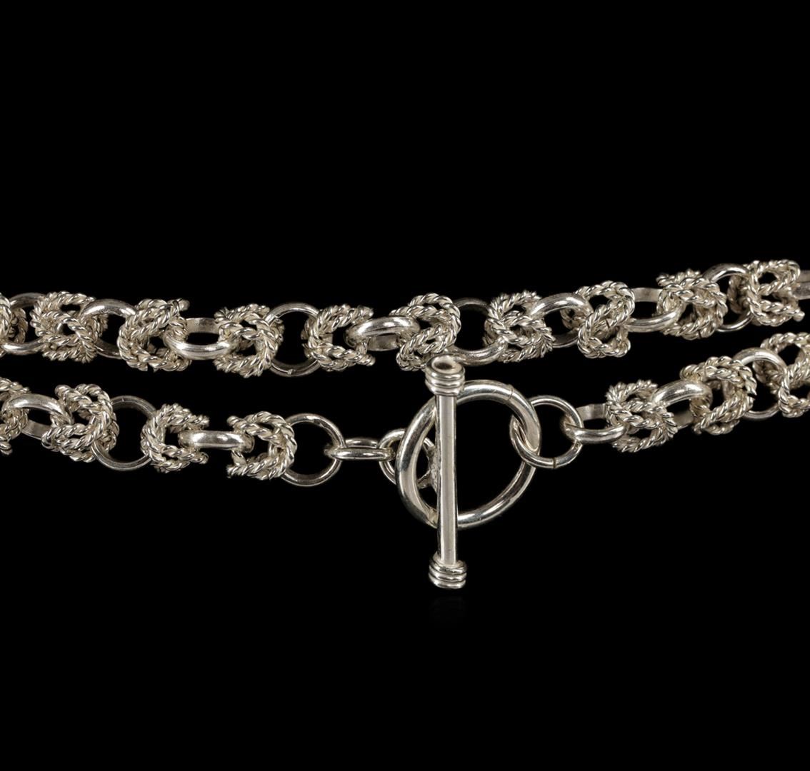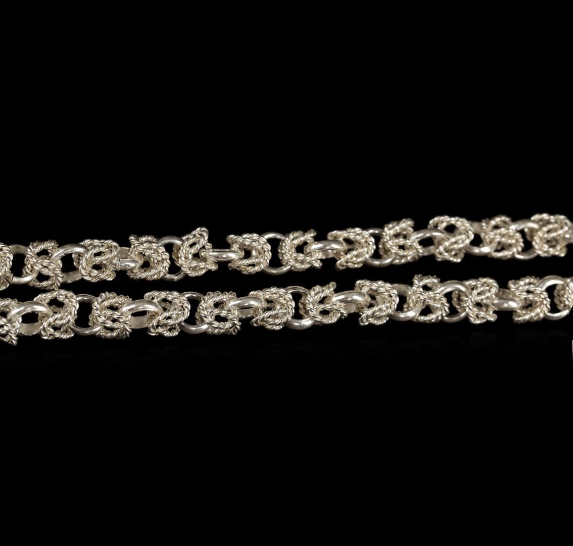 One of a kind high fashion sterling silver necklace weighing 63.5 grams. This sterling silver promises a lasting shine.
