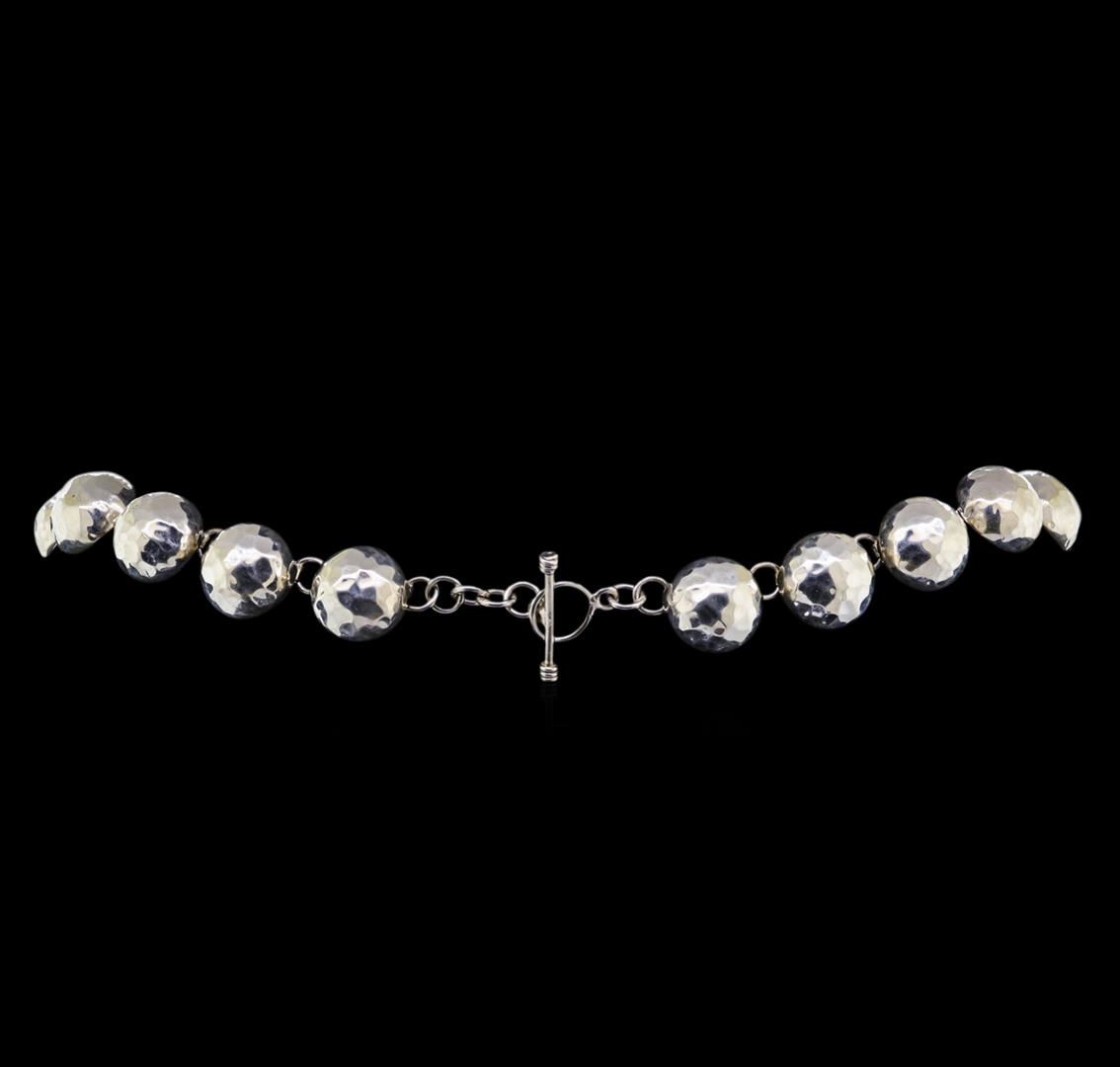 One of a kind high fashion sterling silver necklace weighing 78.9 grams. This sterling silver promises a lasting shine.