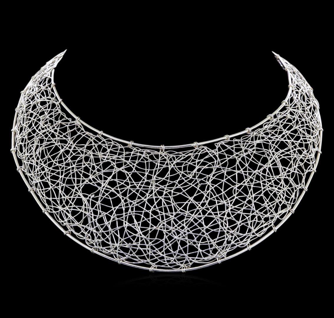 One of a kind high fashion sterling silver necklace weighing 47.6 grams. This sterling silver promises a lasting shine.