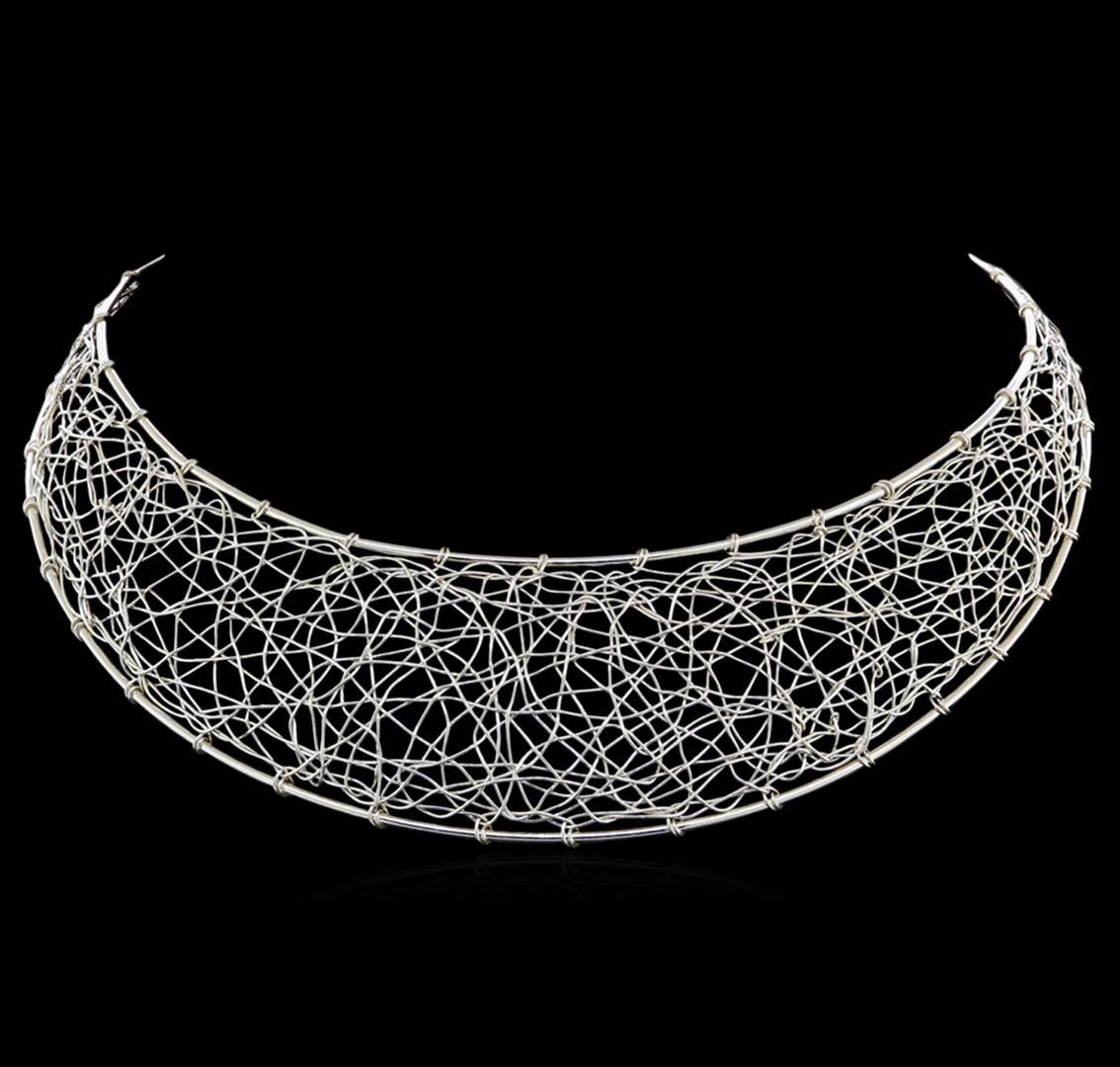 One of a kind high fashion sterling silver necklace weighing 35.7 grams. This sterling silver promises a lasting shine.