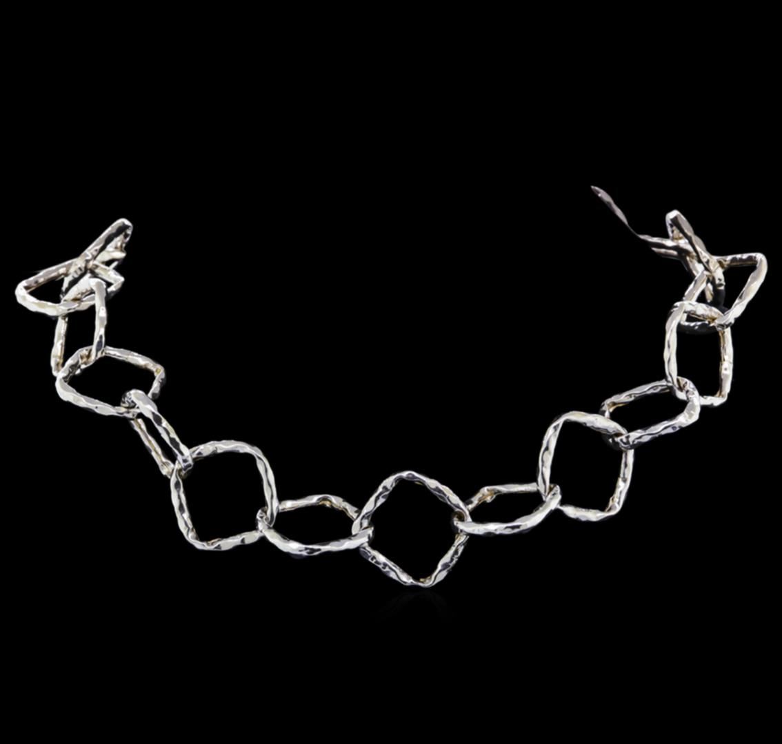 One of a kind high fashion sterling silver necklace weighing 93.4 grams. This sterling silver promises a lasting shine.