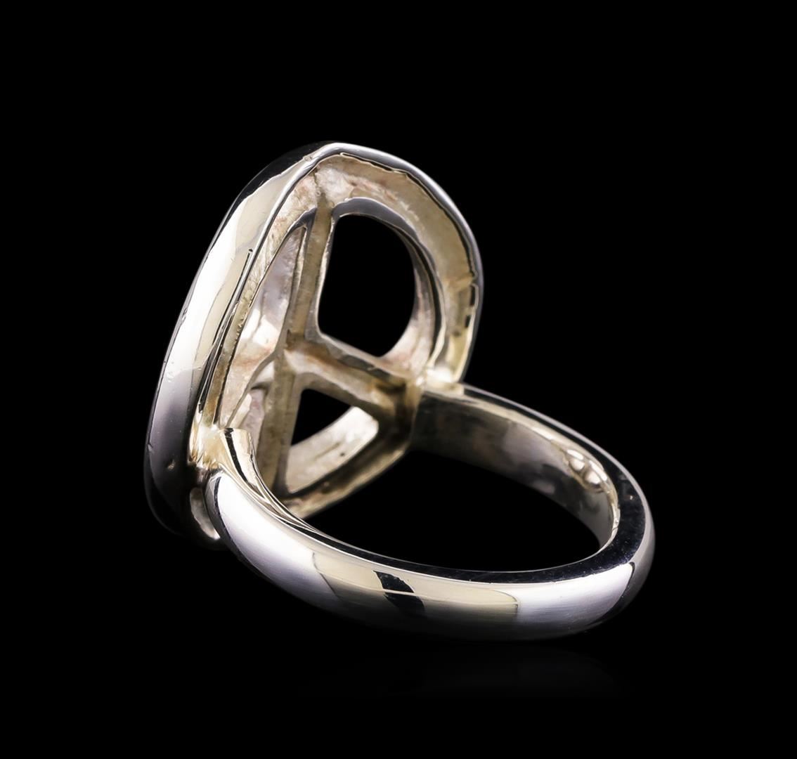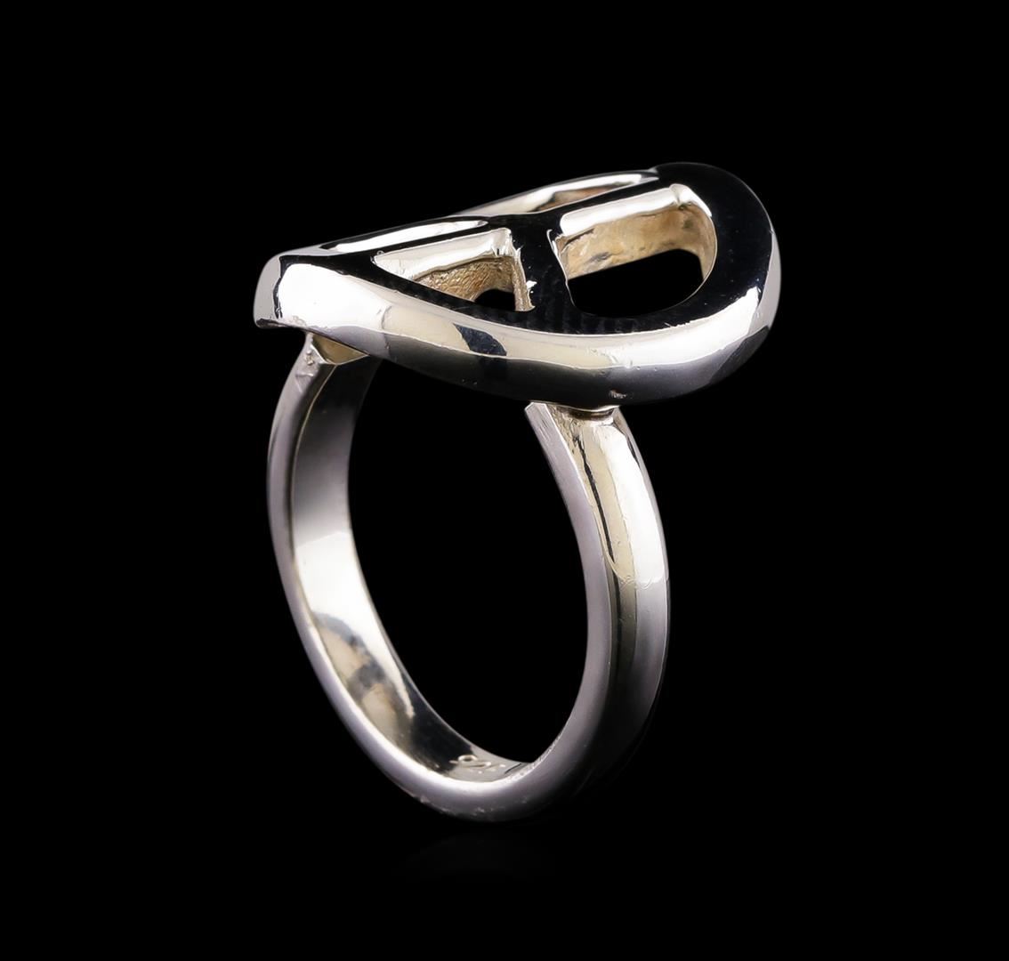 One of a kind high fashion sterling silver peace ring weighing 7.8 grams. This sterling silver promises a lasting shine.